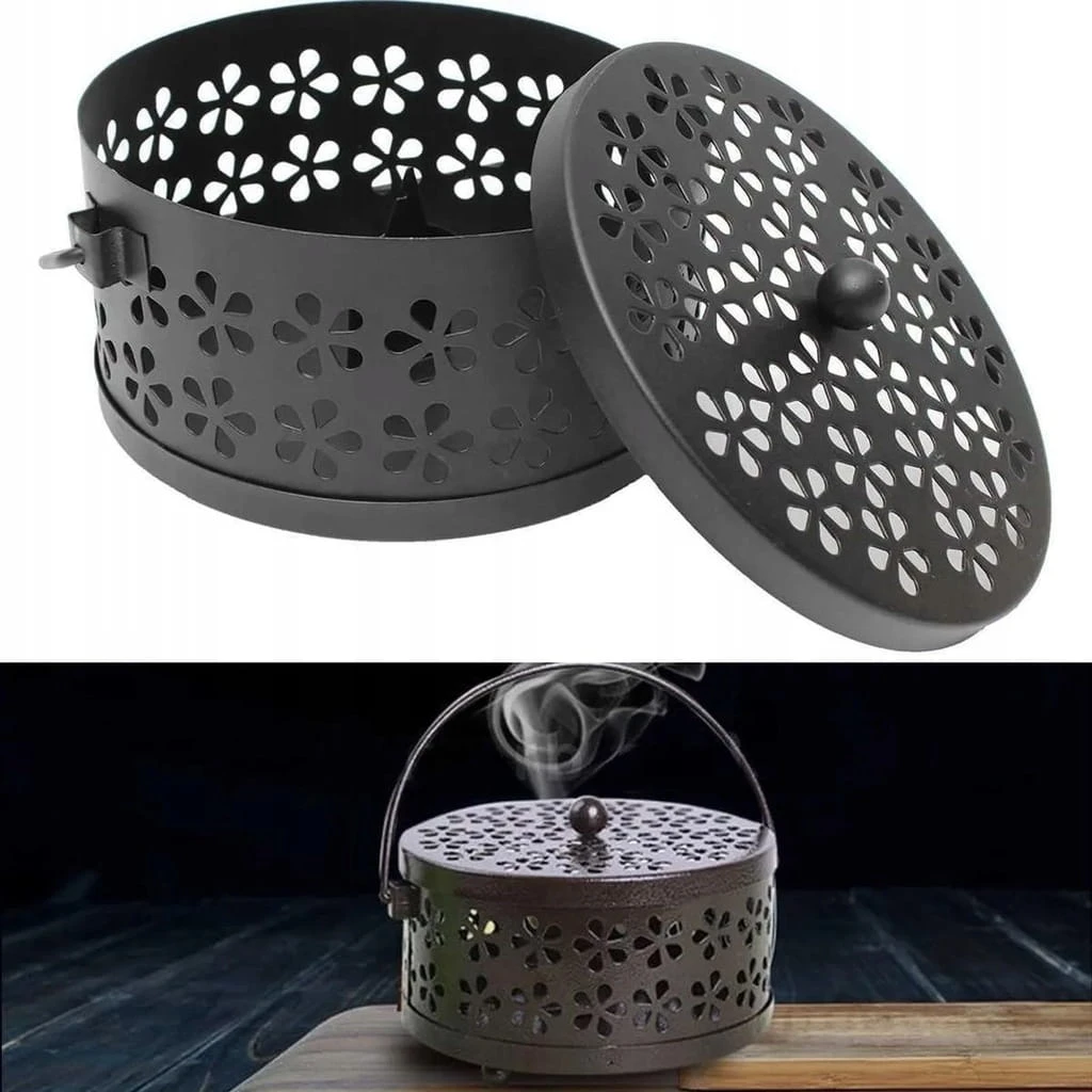 Kominek zapachowy na komary – metalowy pojemnik spirala, organizer do ogrodu