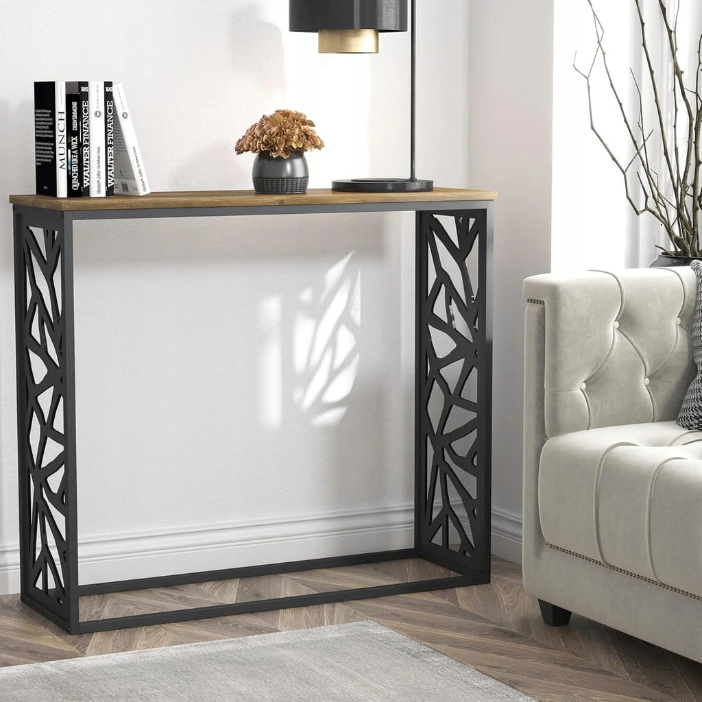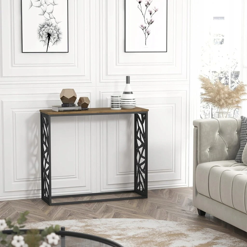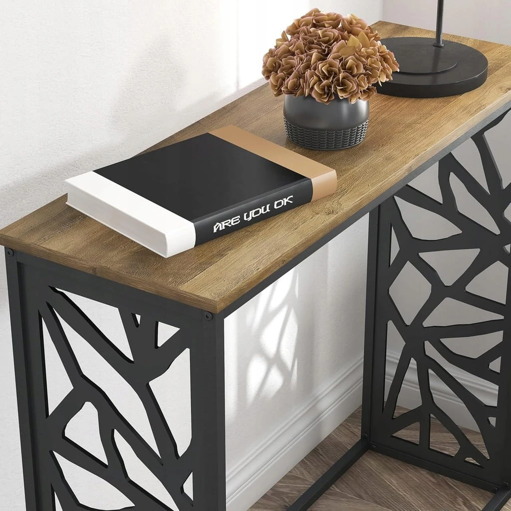☑️ Trwały materiał: Wykonany z metalowej podstawy i drewna konstrukcyjnego w klasycznym wykończeniu, ten stolik konsolowy jest trwały i długotrwały.