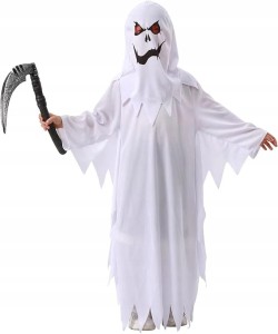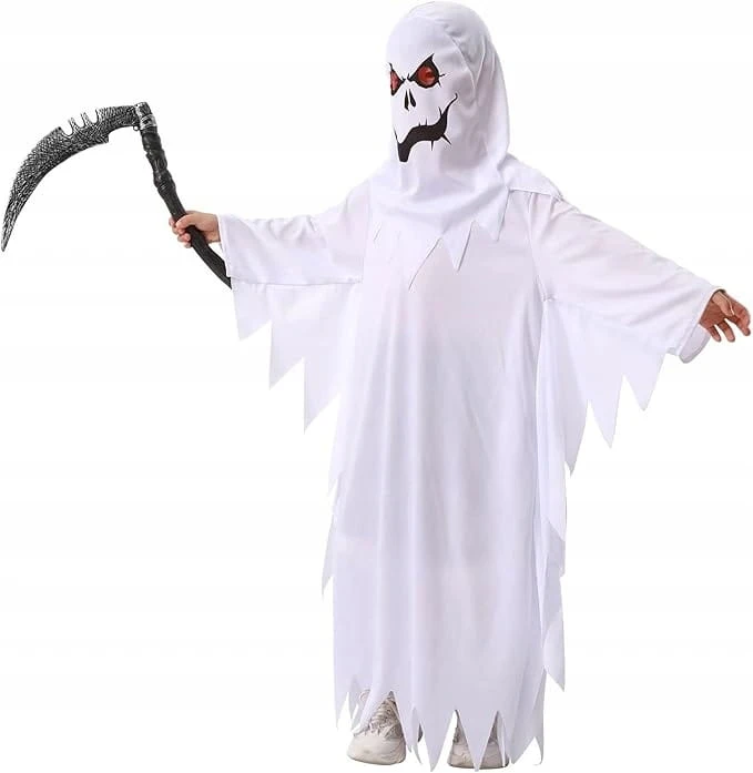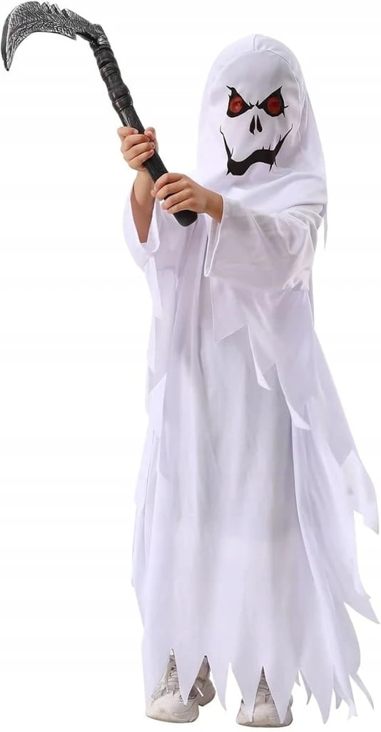 Kostium Halloween „biały duch z kosą” – przebranie dziecięce dla chłopca