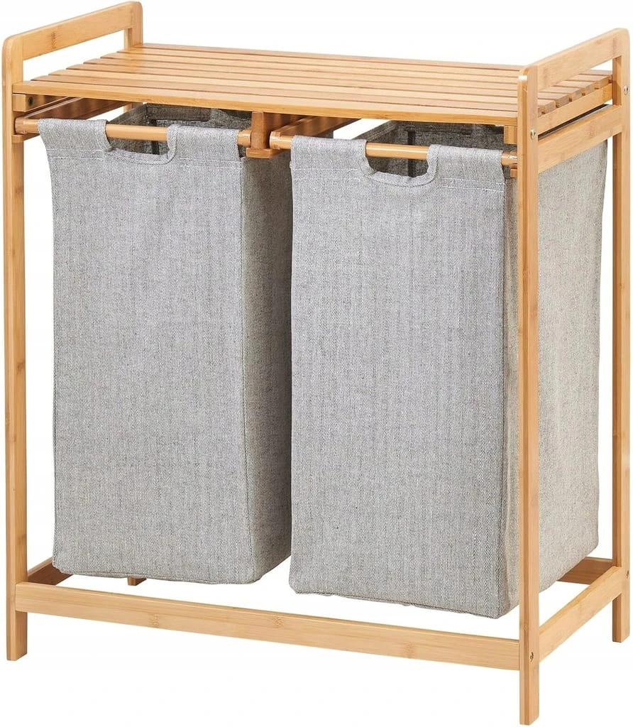 Kosz na pranie bambusowy – organizer z półką, duo 2 komory