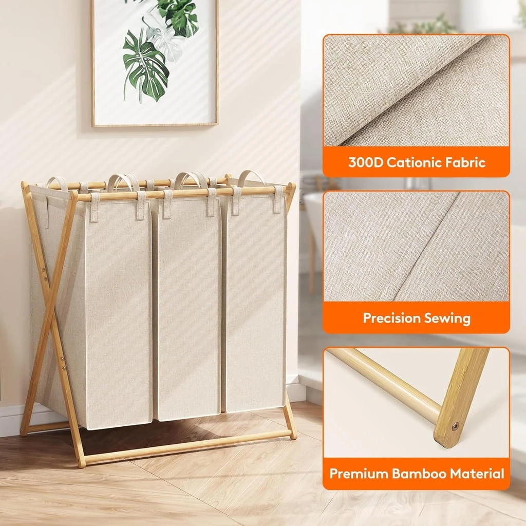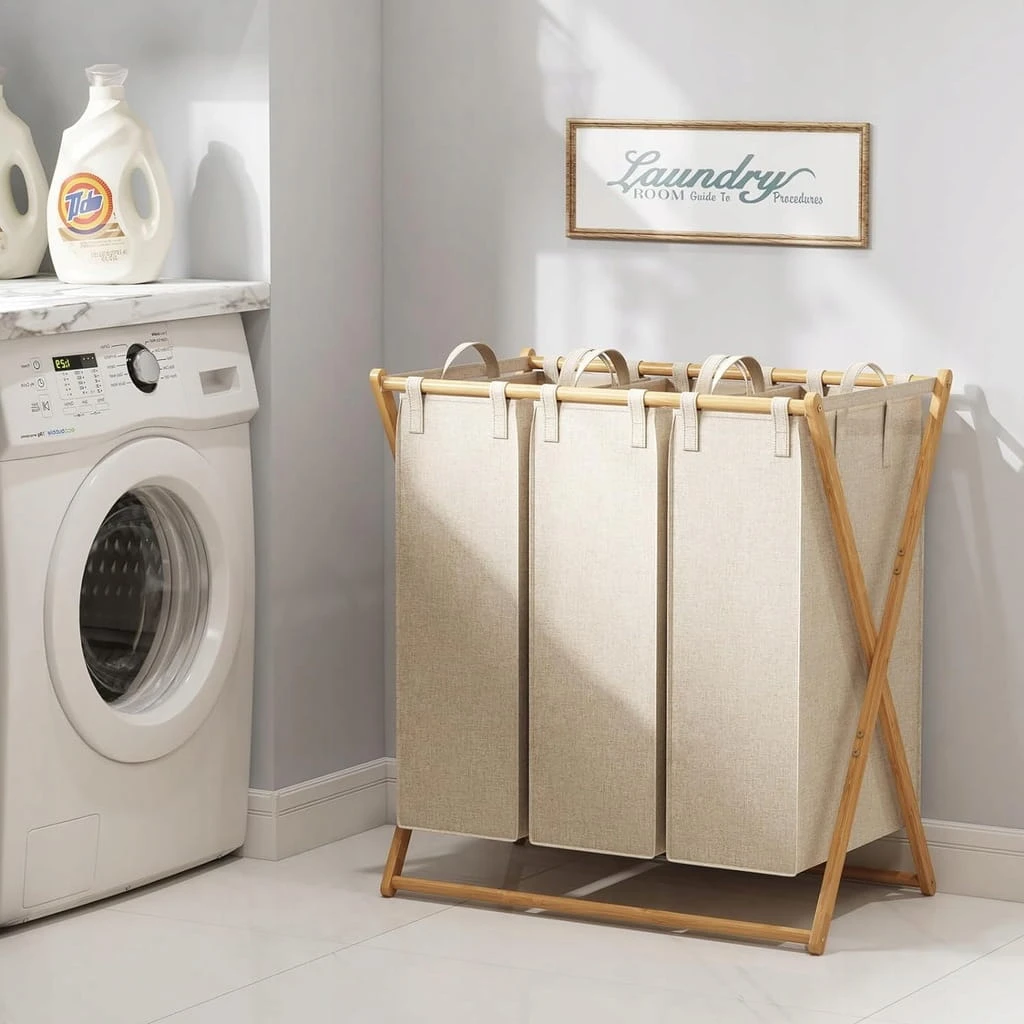 - ✅ Składana konstrukcja: Trzy oddzielne torby na pranie umożliwiają łatwe sortowanie ubrań według koloru, rodzaju lub dowolnych preferowanych kryteriów. Składany kosz na pranie można zastosować w stosunkowo małych przestrzeniach, takich jak wąskie sypialnie i szczeliny, aby pomóc Ci lepiej wykorzystać każdy centymetr przestrzeni w domu.