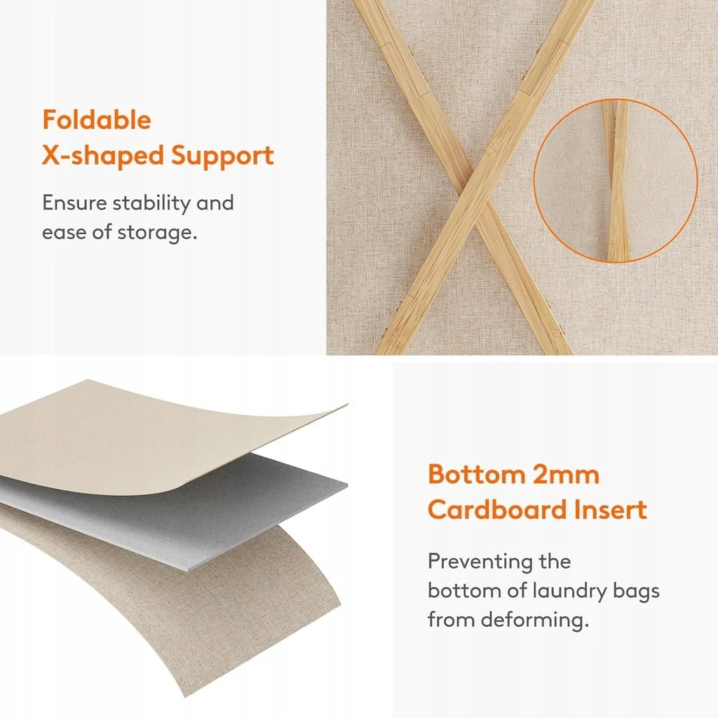 Kosz na pranie składany 150 l – bambusowy, tkanina