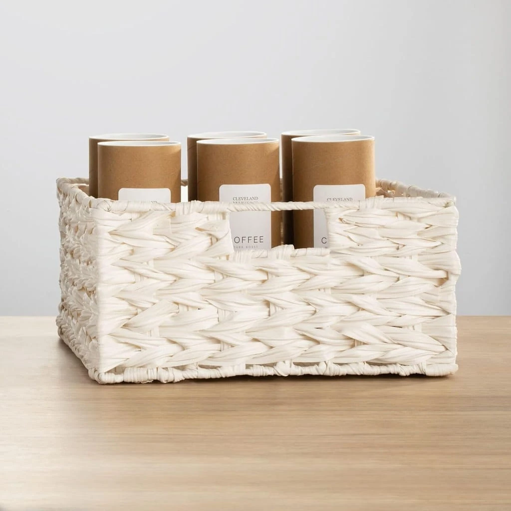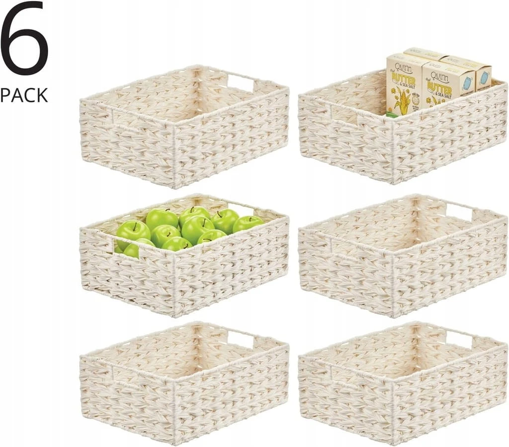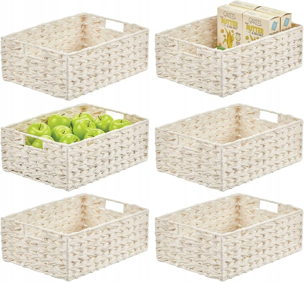 - ✅ NATYCHMIASTOWA ORGANIZACJA: Te duże tkane pojemniki do przechowywania utrzymują bałagan w domu pod kontrolą, przechowując wszystkie niezbędne rzeczy w spiżarni; Doskonale nadaje się do przechowywania suchych produktów, mieści konserwy, zupy, opakowania żywności, przyprawy, przybory do pieczenia, torby na przekąski, żywność w pudełkach, butelki z napojami gazowanymi, napoje sportowe i energetyczne; Używaj obok siebie, aby stworzyć rozwiązanie do przechowywania, które będzie dla Ciebie najlepsze; Te piękne kosze są idealne do półek spiżarni i blatów; Zestaw 6 szt.