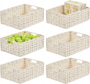 Kosze plecione – organizer na drobiazgi do szafy z uchwytami (zestaw – 6 sztuk)