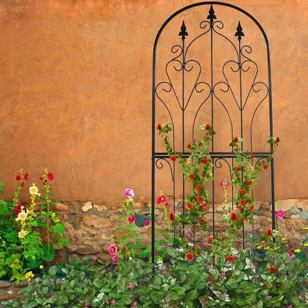 ✅ Duża przestrzeń do wspinaczki: Szerokie, łukowate panele boczne kratownicy zapewniają wystarczającą przestrzeń do wzrostu i rozkwitu pnączy. Metalowa rama kratownicy ma solidny i wytrzymały fundament ze spawanego żelaza, dzięki czemu ta 180-centymetrowa konstrukcja stoi stabilnie.