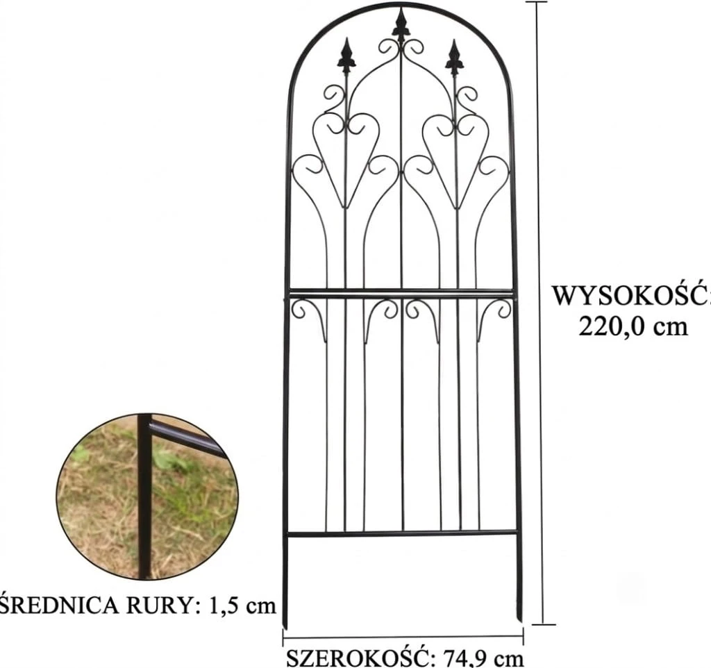 ✅ Stabilna konstrukcja. Metalowa rama siatki ma solidną i wytrzymałą, spawaną, żelazną podstawę, która pozwala tej konstrukcji o długości 2,2 m stać pionowo i stabilnie. Szerokie, łukowate panele boczne zwiększają powierzchnię wspinaczkową roślin. 25-centymetrowy palik mocno wbija się w podłoże, zapewniając dodatkowe wsparcie kratownicy.