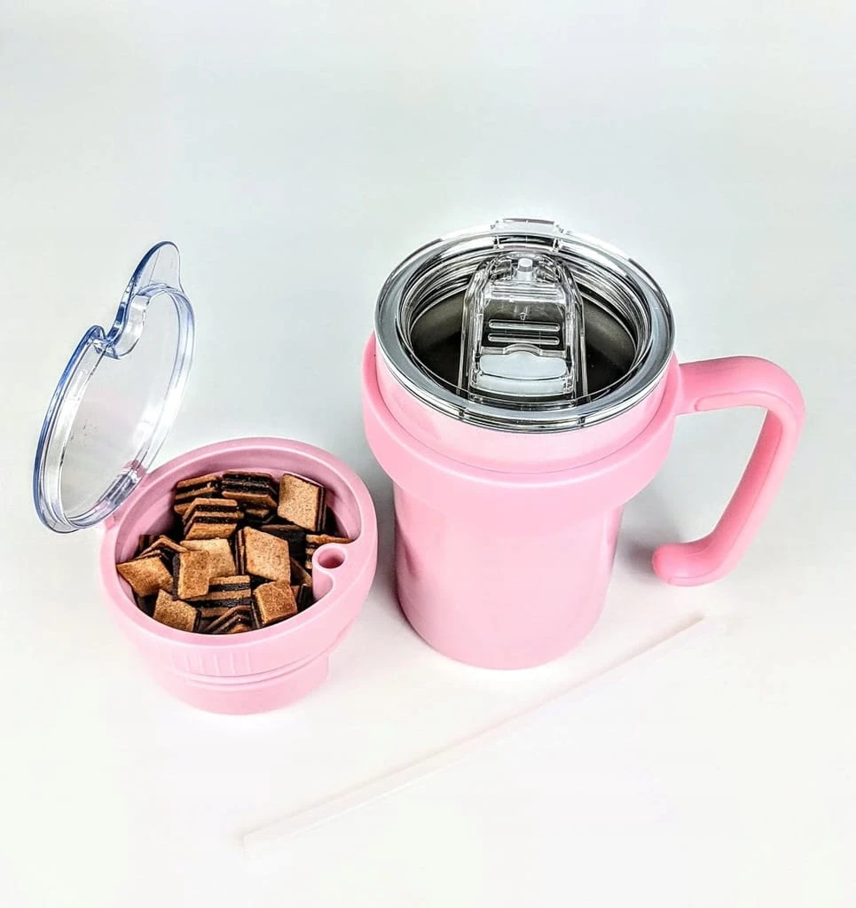 Kubek 2w1 na napój i przekąski 355 ml – z uchwytem i słomką, utrzymuje temperaturę