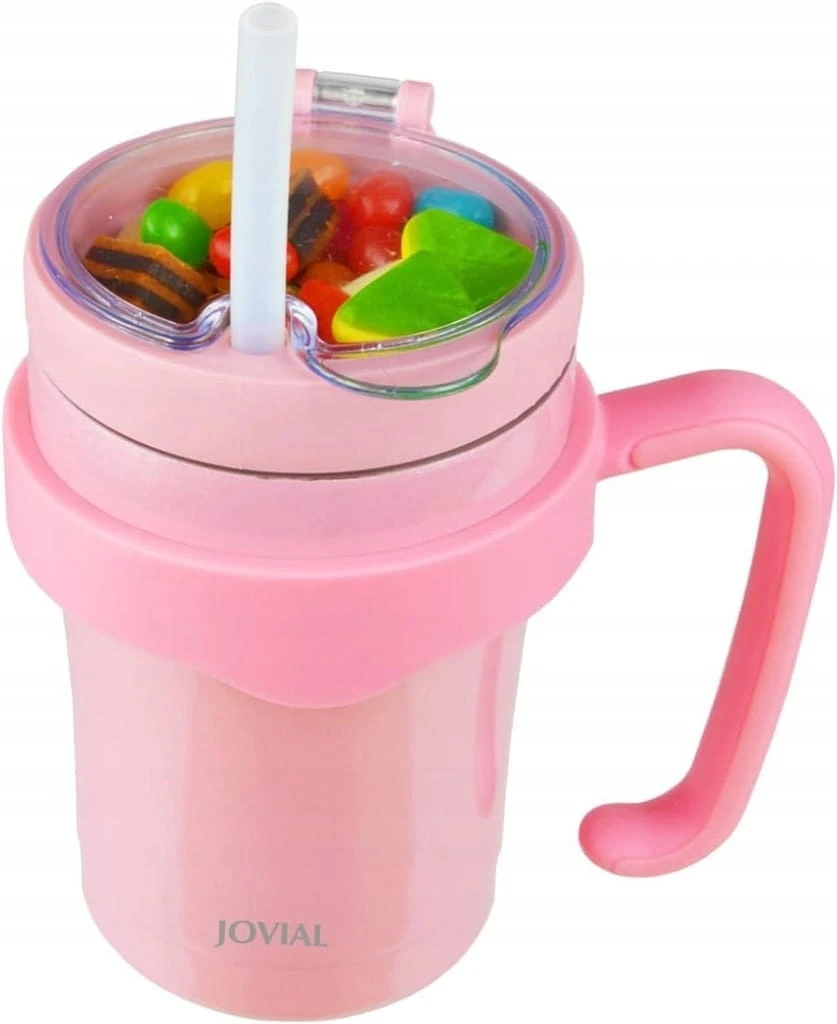 - ✅ JOVIAL Wszystko w jednym kubek na przekąski i napoje z pojemnikiem na przekąski, słomką i uchwytem, izolowany kubek ze słomką ze stali nierdzewnej, działa jako kubek do kawy 355 ml / kubek na mleko, aby utrzymać zimno lub ciepło przez wiele godzin