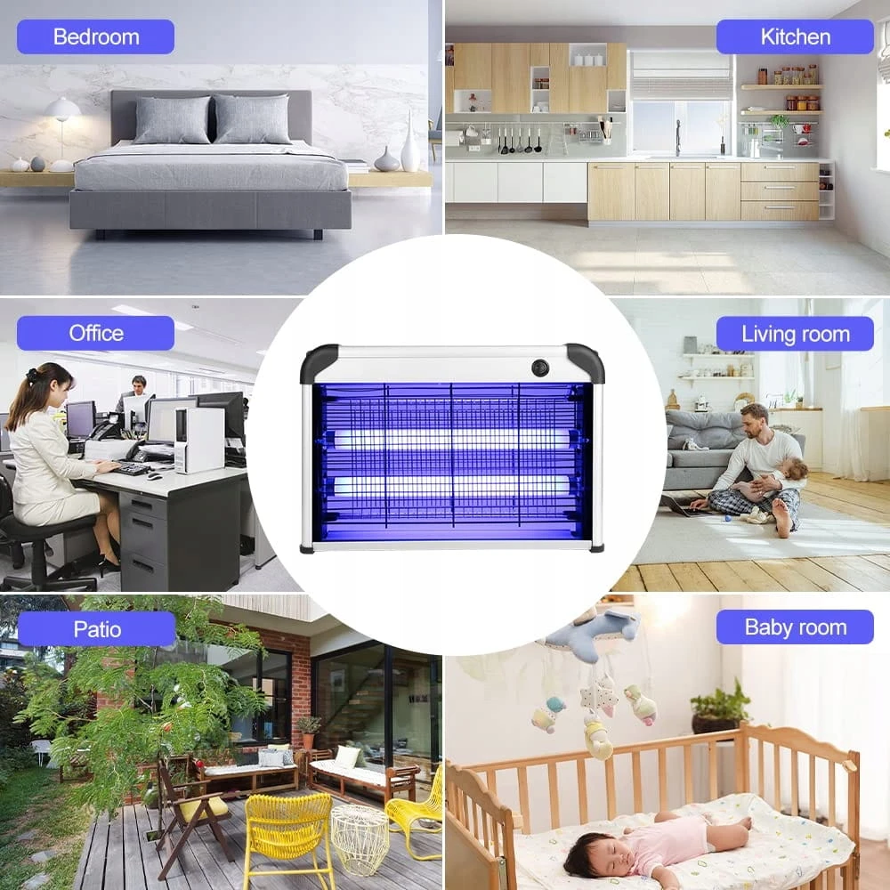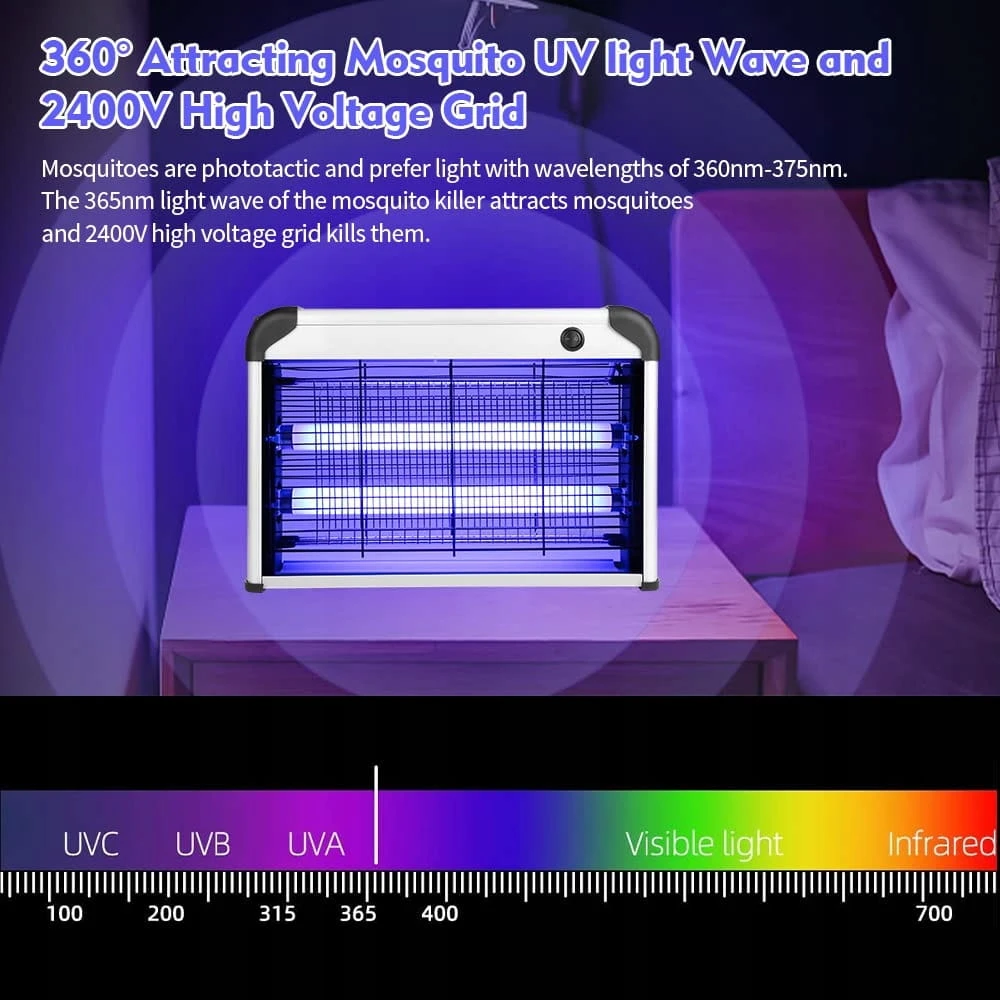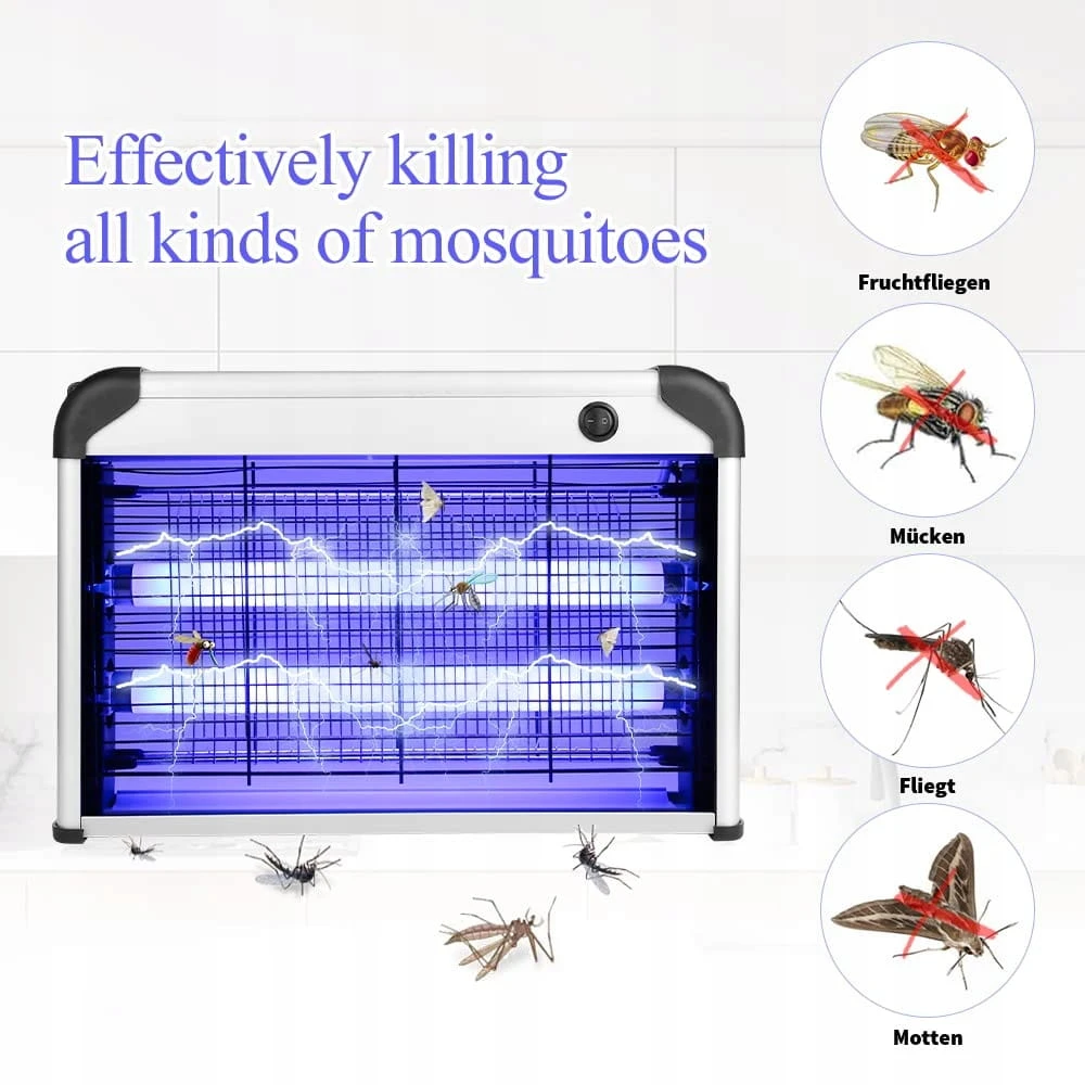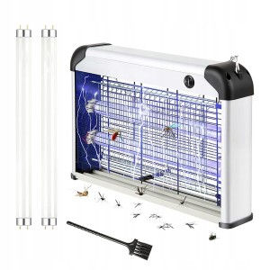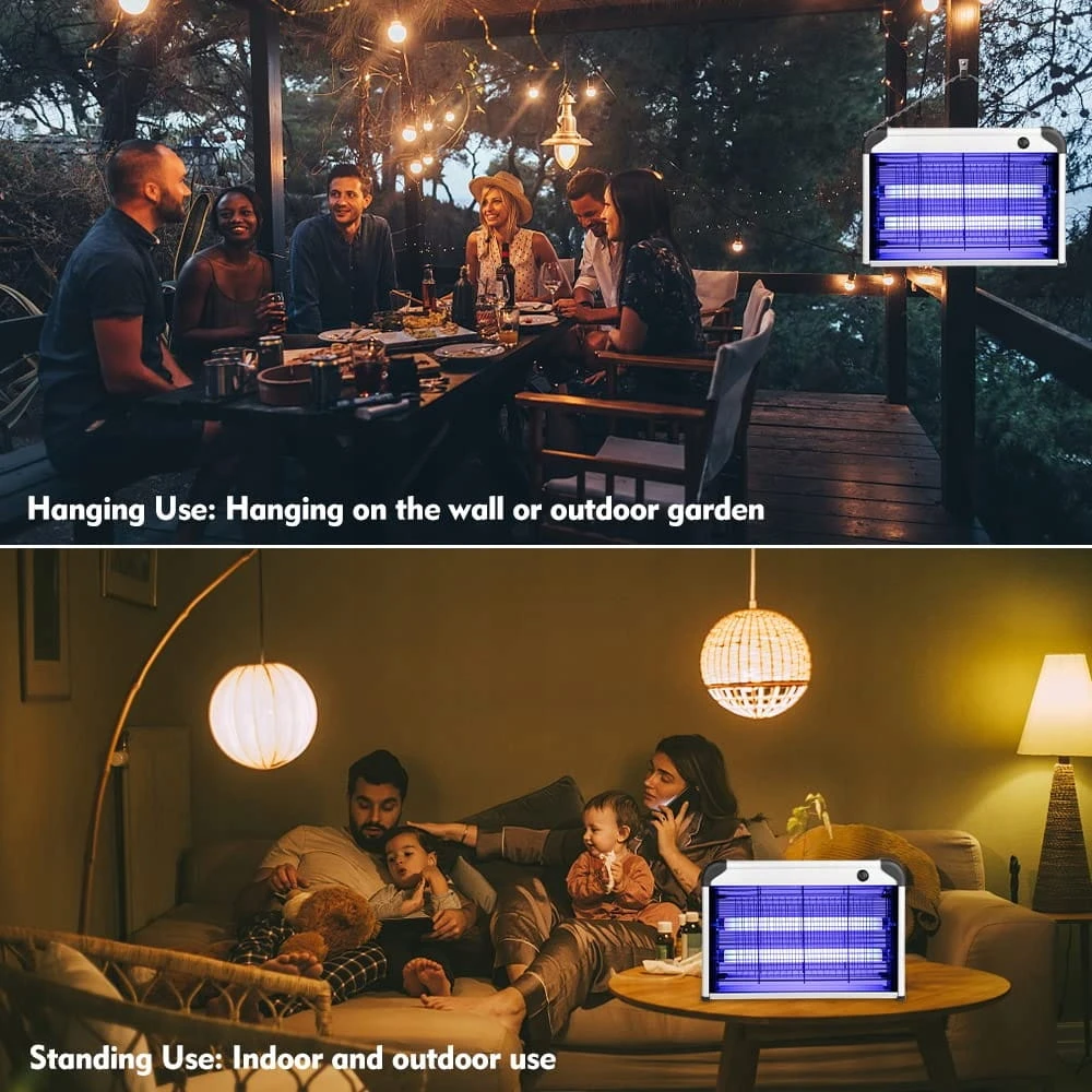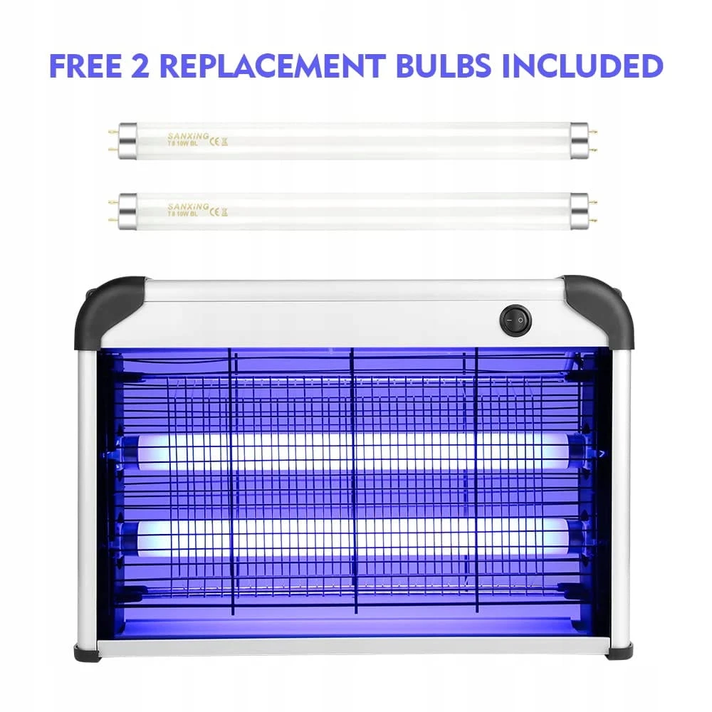 - Skuteczne zabijanie komarów: dzięki dwóm wysokiej jakości lampom UV 10 W, które przyciągają wszystkie rodzaje szkodliwych owadów (komary, muchy, robaki,), stają się bardziej elektryczne dzięki metalowej siatce wysokiego napięcia 2400 V wokół zabójcy owadów lampy. Dwustronna konstrukcja lampy zabójcy komarów może przyciągnąć i zabić więcej komarów i much. Pakiet zawiera 2 wymienne lampy świetlne, dzięki czemu można wymienić oryginalną lampę w przypadku pęknięcia bez konieczności ponownego zakupu nowego urządzenia.
