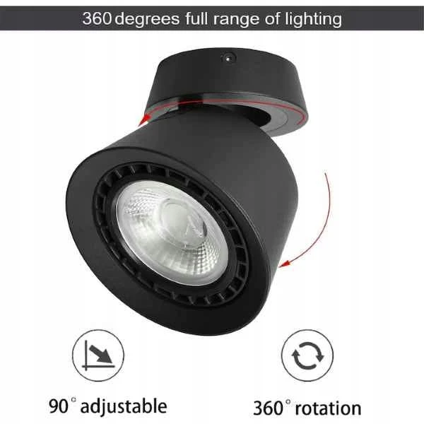 - ✅ Obrotowy reflektor natynkowy LED: czarna lampa powierzchniowa jest regulowana w zakresie 365 stopni, kieruj światło dokładnie tam, gdzie jest potrzebne, po prostu regulując, obracając lub pochylając głowicę reflektora.