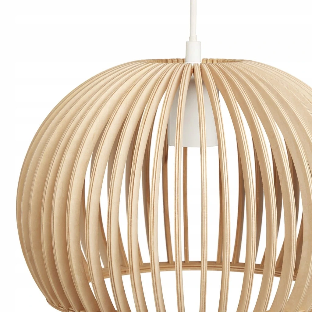 Wisząca lampa wykonana z naturalnie usłojonego drewna lipowego przyciąga wzrok, niezależnie od tego, czy oświetla salon lub kuchnię po włączeniu, czy jest oglądana nieco bliżej w świetle dziennym.