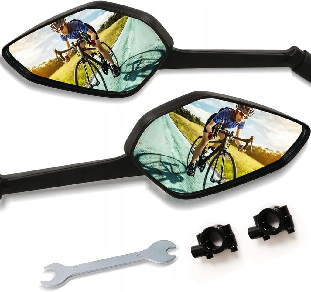 - ✅ Wszechstronne zastosowanie: lusterko rowerowe do kierownicy o średnicy od 21 mm do 23 mm i szerokości 19 mm. Niezależnie od tego, czy jeździsz na rowerze elektrycznym, tradycyjnym rowerze, rowerze górskim, skuterze lub motocyklu, nasze lusterka rowerowe można dopasować.