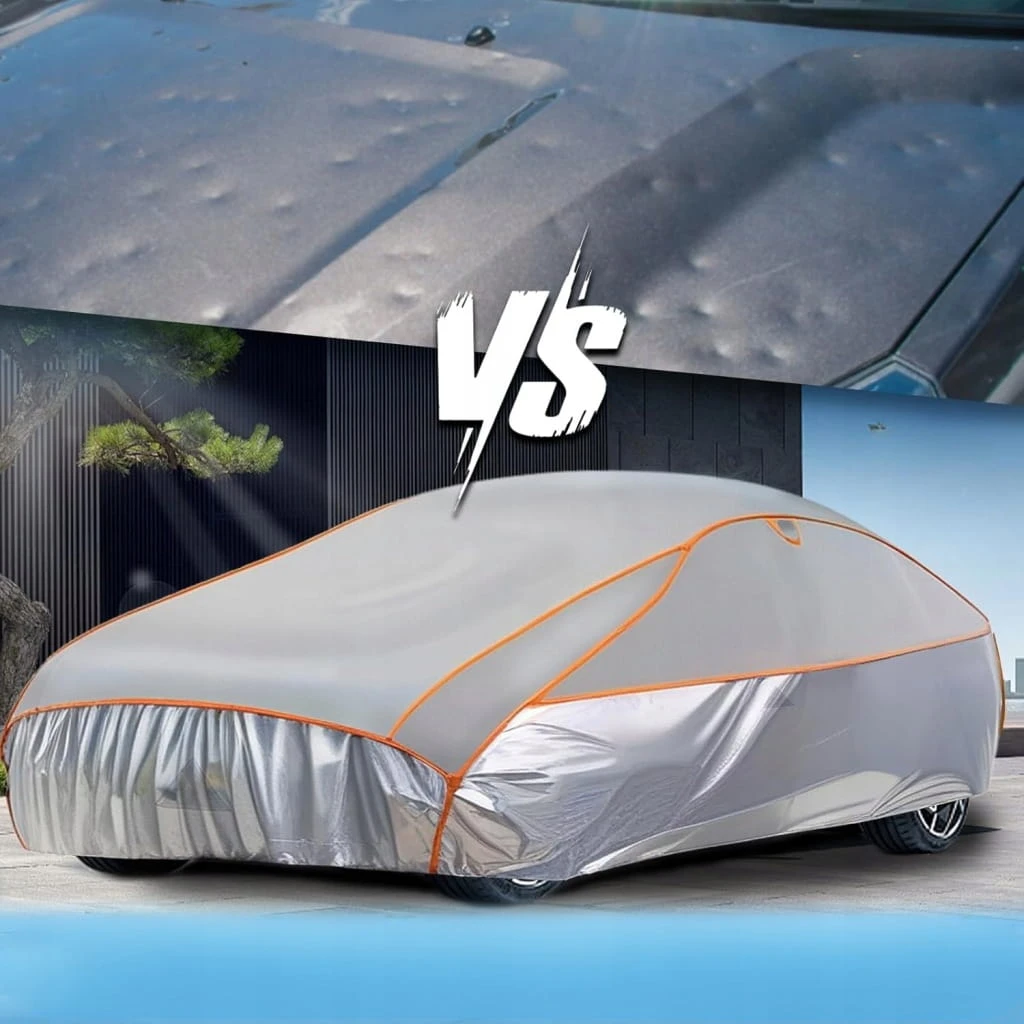 ✅ Solidna ochrona: powierzchnia pokrowca samochodowego jest wykonana z wysokiej jakości, elastycznego, odpornego na uderzenia materiału EVA, odporna na grad osłona samochodowa absorbuje uderzenia gradu w optymalny sposób. Bez problemu wytrzymuje gradobicie o średnicy do 15 mm i prędkości uderzenia do 70 km/h. Nawet w przypadku ekstremalnych opadów gradu osłona samochodowa zapobiega przebiciu przedniej szyby bez silnych wgnieceń.