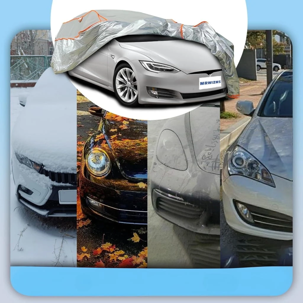 MRWIZMS Plandeka ochronna na samochód, odporna na grad, do samochodów osobowych o długości od 400 cm do 450 cm, ochrona przed gradem, trwały garaż.