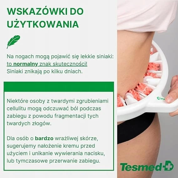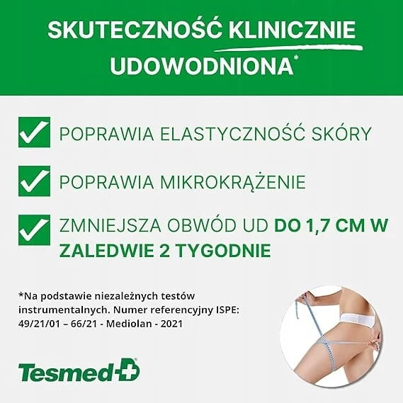 - ✅Tesmed Cellulite pomaga uzyskać bardziej miękką i elastyczną skórę, leczony obszar wydaje się bardziej stonowany, szczuplejszy i gładszy oraz można uzyskać znaczną redukcję skórki pomarańczowa skorka