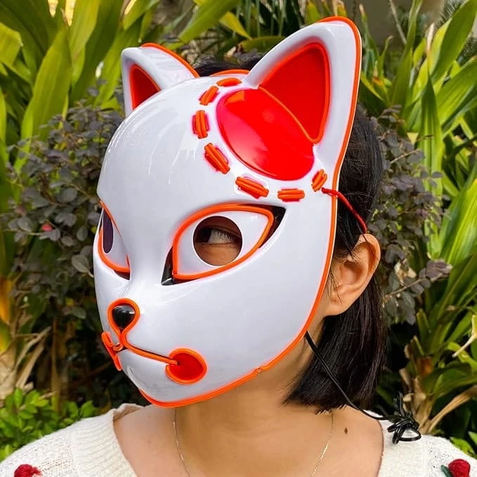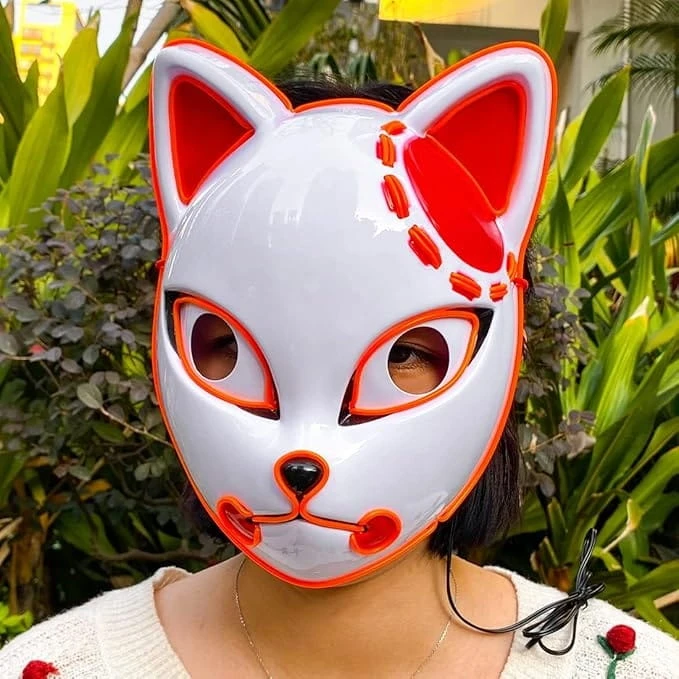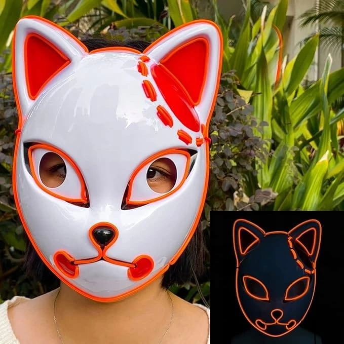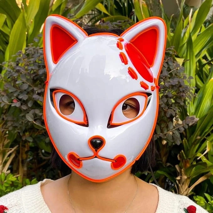 Maska LED anime „Łowca Demonów” – świecąca, neon, cosplay Halloween