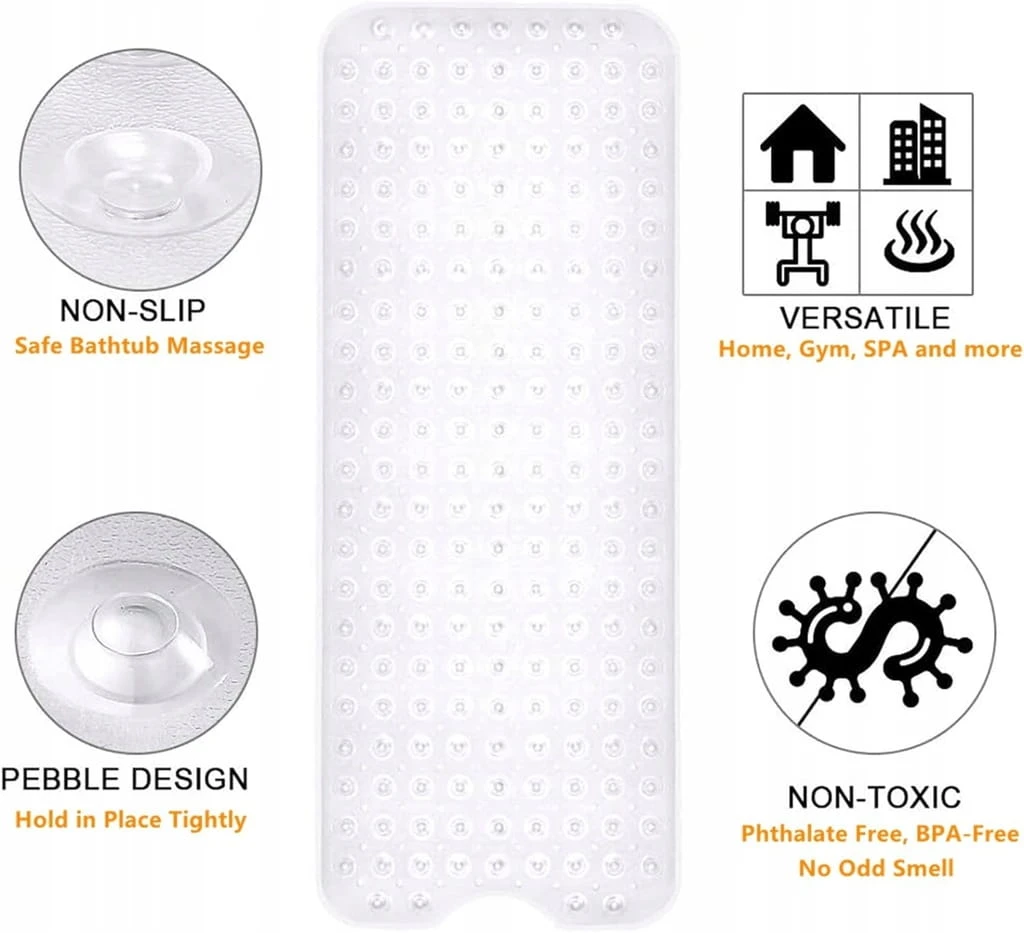 - ✅ Mata pod prysznic o wymiarach 100 x 40 cm - Ultra mata antypoślizgowa do wanny jest wystarczająco długa, aby całkowicie pokryć większość wanien. Ponadto tę elastyczną podkładkę można łatwo przyciąć, aby dopasować ją do krótszych wanien Niezbędny do łazienki w domu.