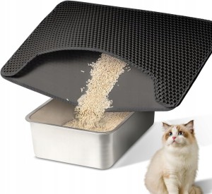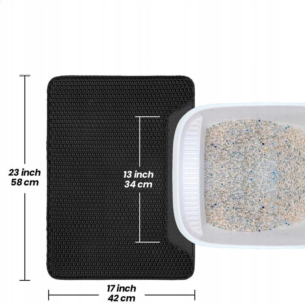 Mata pod kuwetę XXL 58 x 42 cm – wycieraczka dwuwarstwowa dla kota, czarna