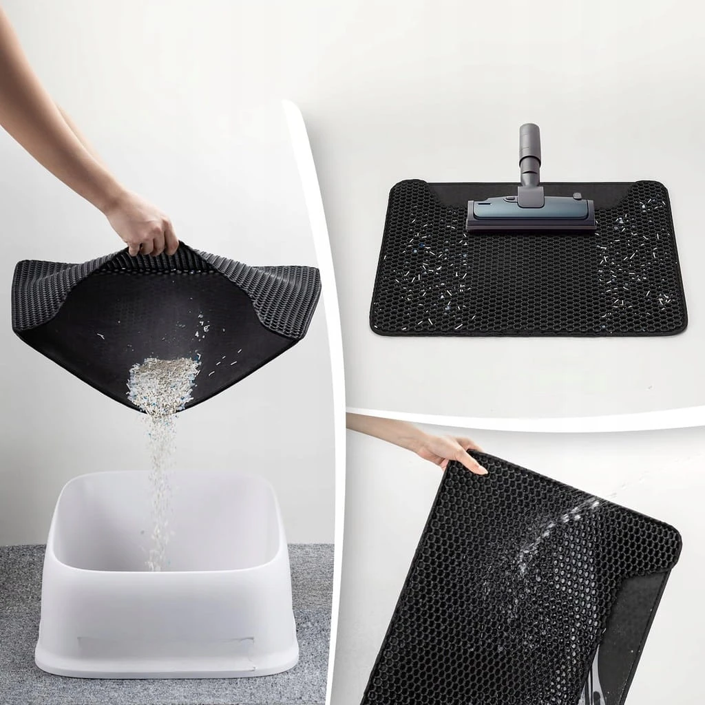 - ✅ Bezproblemowe czyszczenie: nasza średniej wielkości mata do żwirek dla kotów jest wyposażona w powiększony otwór w kształcie kociego uszu i trójstronne uszczelnienie zapewniające bezproblemowe czyszczenie. Wystarczy otworzyć matę jak kieszeń na dokumenty, aby łatwo usunąć ściółkę lub szybko wyczyścić odkurzaczem. W przypadku uporczywych plam należy umyć wodą i mydłem, aby przywrócić nieskazitelny wygląd. Innowacyjna konstrukcja firmy Conlun sprawia, że czyszczenie żwirku dla kotów jest bardziej wydajne.