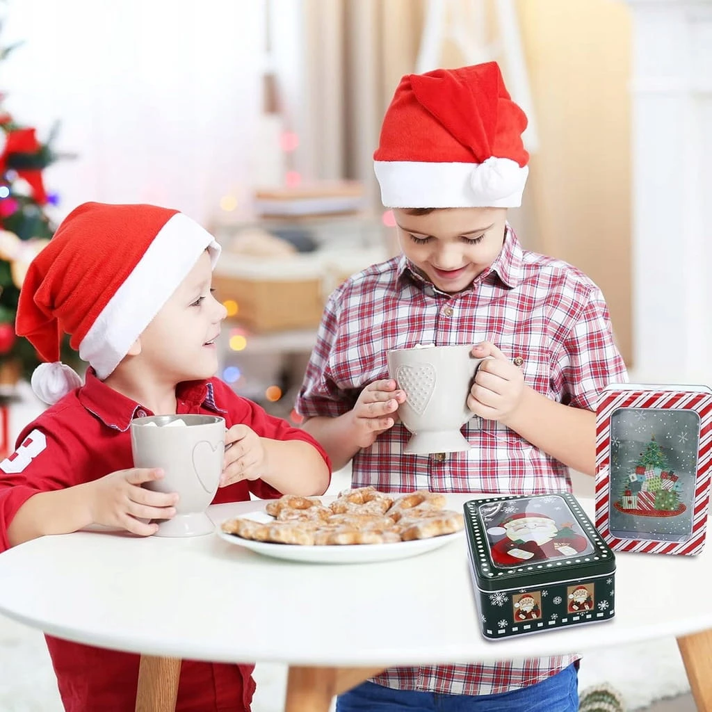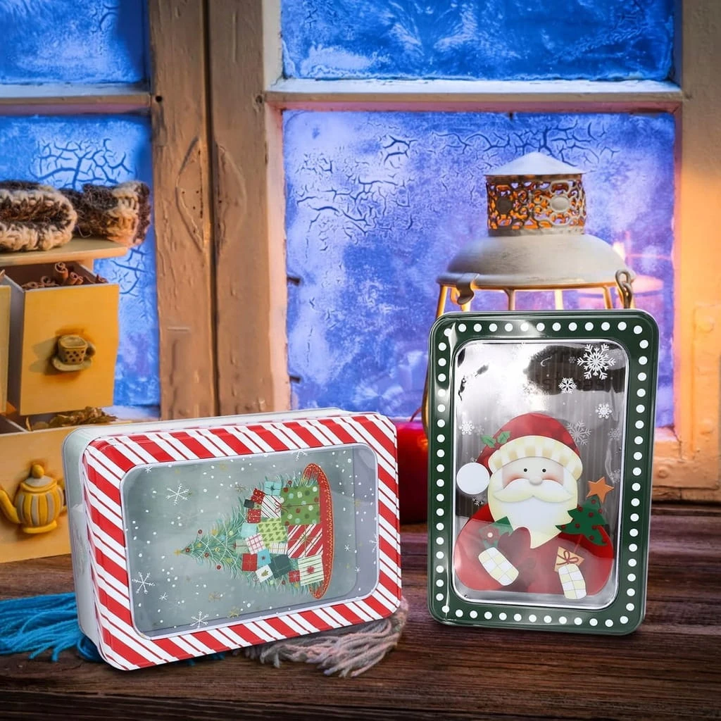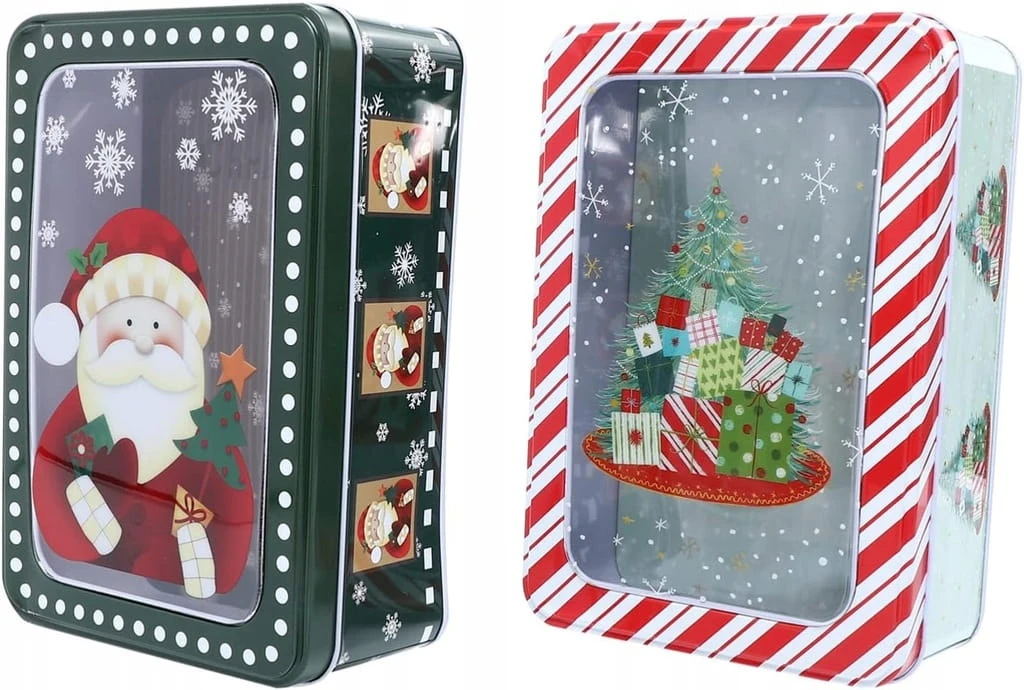 Metalowe pudełko świąteczne – na słodycze i ciasteczka, organizer Mikołaj (zestaw – 2 sztuki)