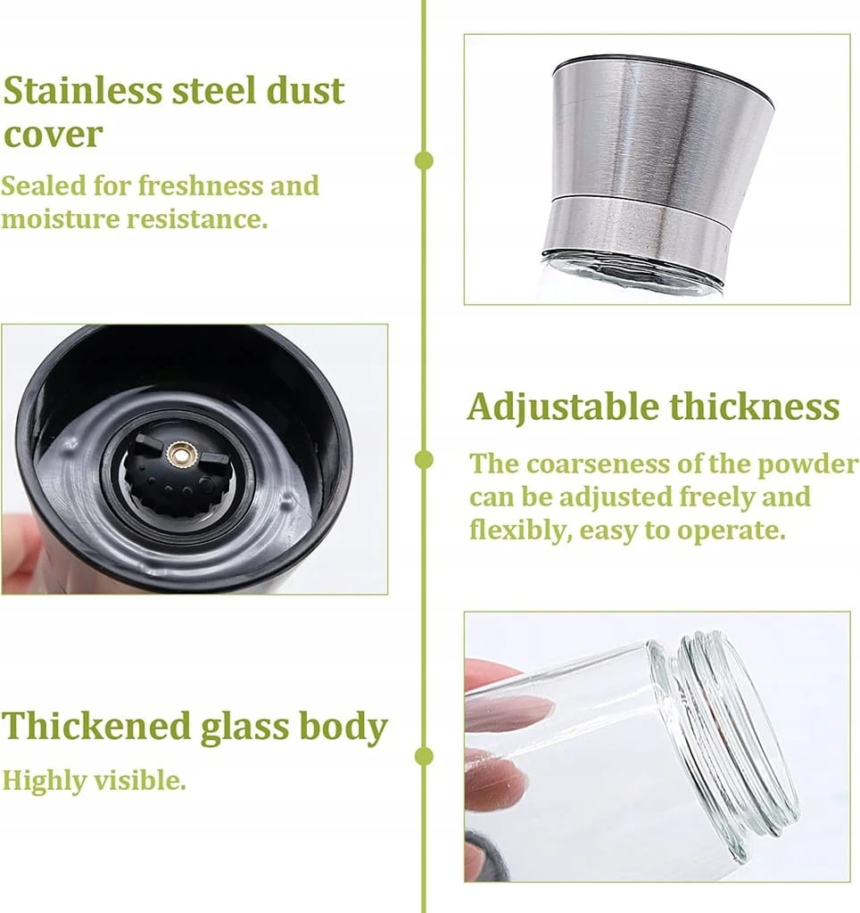 - Zachowaj świeżość: Szklane pojemniki zestawu młynków do przypraw chronią przyprawy przed wilgocią i kurzem, a tym samym zachowują smak. Młynek jest łatwy do czyszczenia, a szklane pojemniki można myć w zmywarce