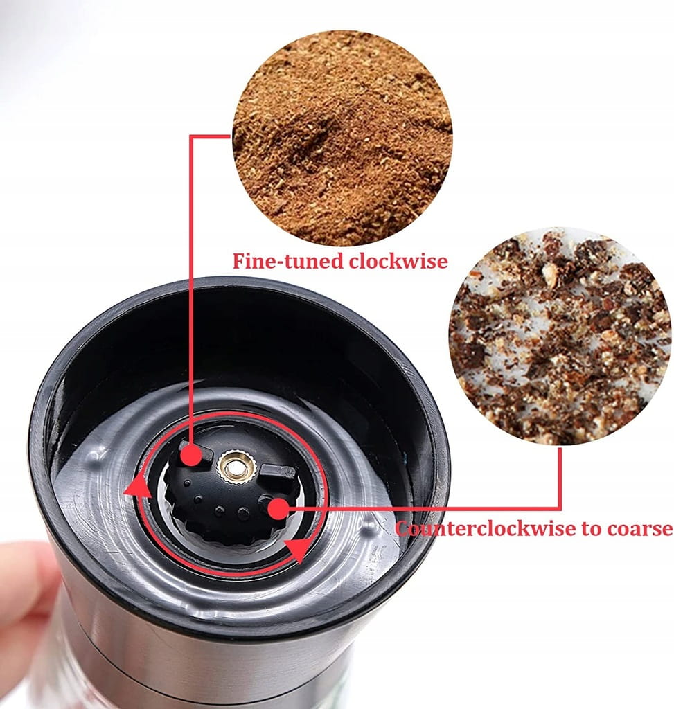 - Doskonałe przyprawy: Dzięki zestawowi młynka do przypraw możesz idealnie zmielić i dozować przyprawy. Regulowany młynek ceramiczny umożliwia szlifowanie od drobnego do grubego, dla uzyskania idealnego smaku