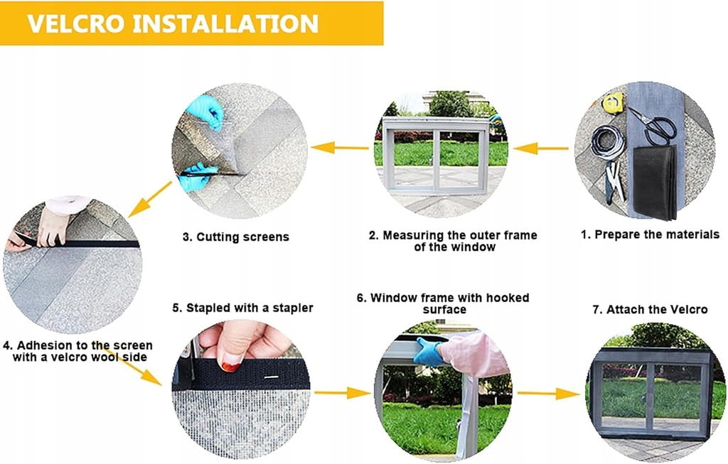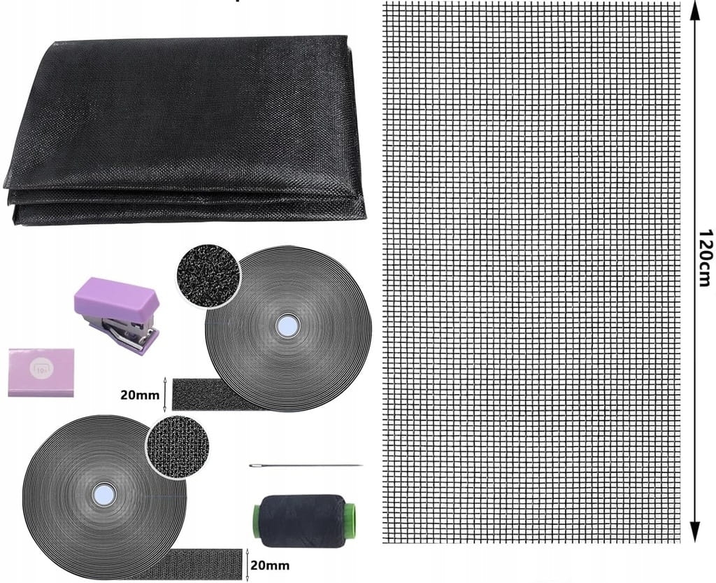 - ✅ Otrzymasz: moskitierę okienko + dwustronny samoprzylepny nylonowy pasek z klamrą + igła + nić + zszywacz i gwoździe.