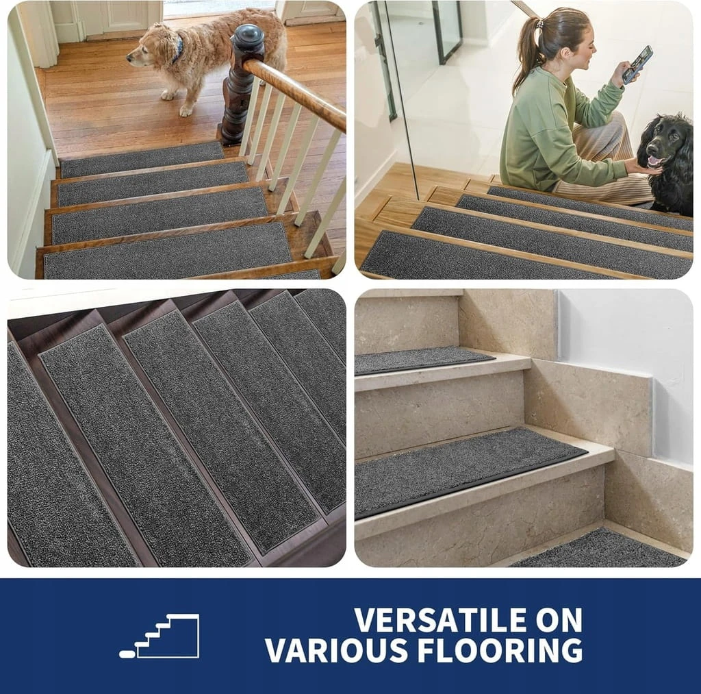 - ✅ SZEROKIE ZASTOSOWANIE: Nasze stopnie schodowe są stosowane do wszelkich schodów o gładkiej powierzchni w pomieszczeniach, które są wykonane z drewna, marmuru, płytek i szkła. Ciesz się cichszym i spokojniejszym otoczeniem domowym dzięki naszym bieżnikom schodowym z wykładziny dywanowej. Idealny do gospodarstw domowych z żywymi dziećmi, psami i zwierzętami domowymi.