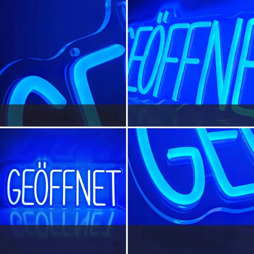 Neon LED Otwarte "GEOFFNET" Akrylowy Napis na Ścianę Lampa Dekoracyjna biel