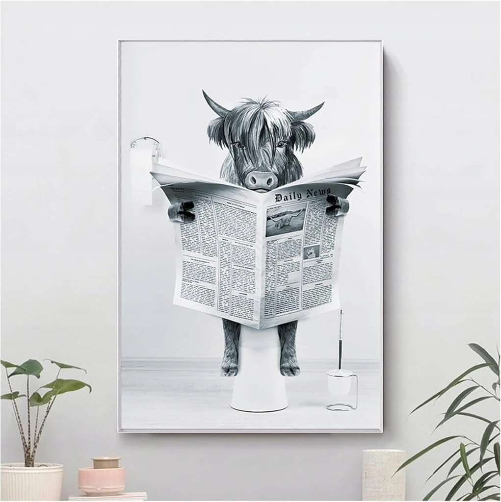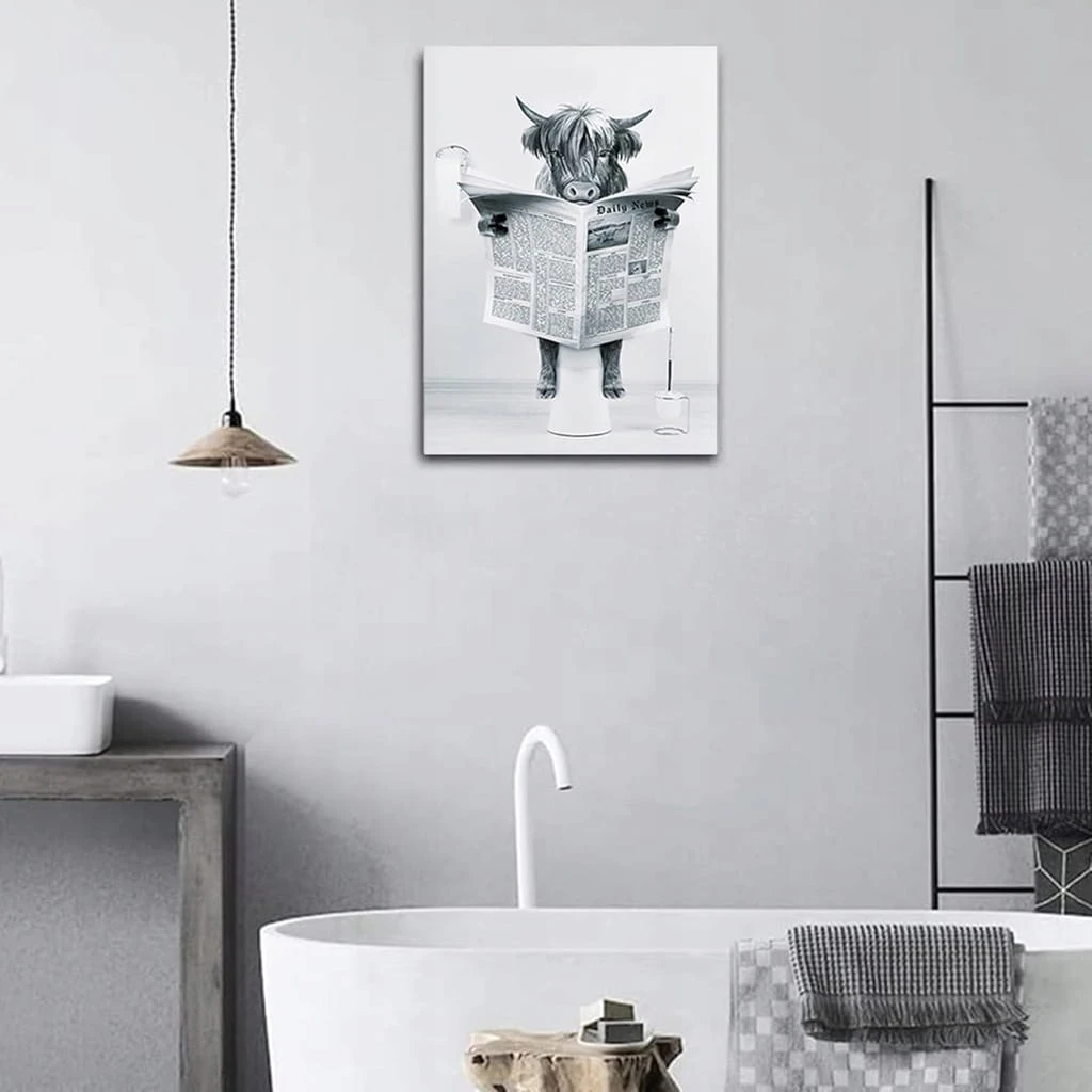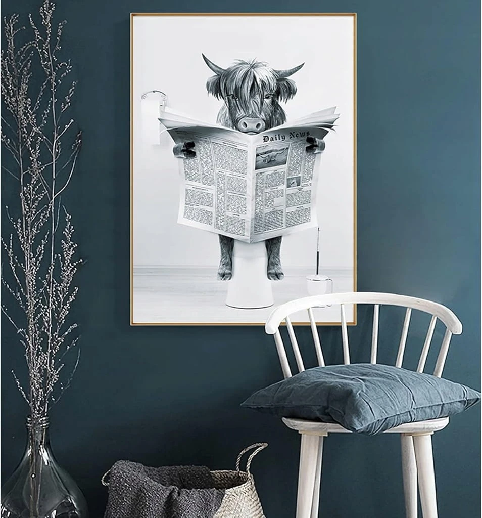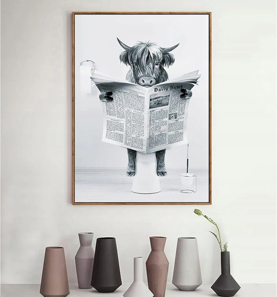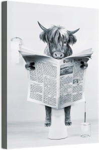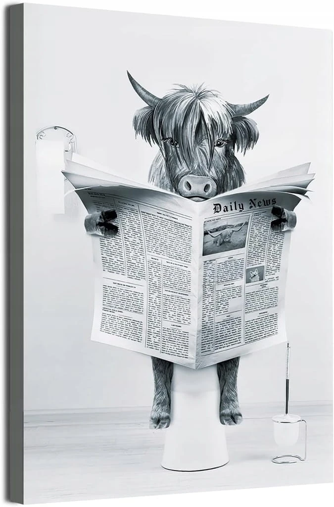 Obraz na płótnie 30 x 40 cm – „Bydło na kiblu”, dekoracja do WC