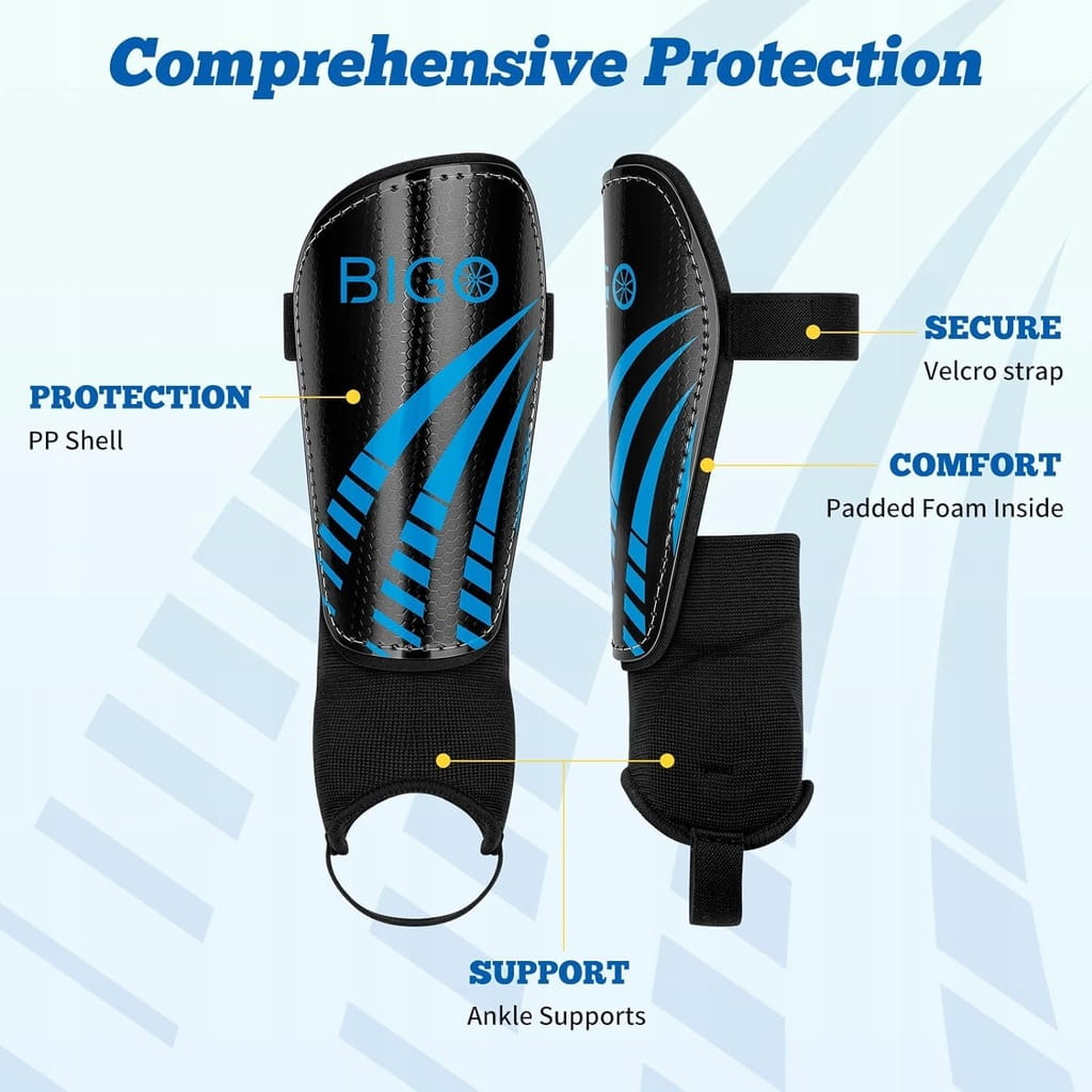 - ✅ Wzmocnienie ochrony kostek. Oprócz ochronnych paneli przednich, nasze ochraniacze na nogi piłkarskie mają dodatkową amortyzację i ochronę kostek, zapewniając większą ochronę, aby uniknąć obrażeń dla początkujących i zaawansowanych.