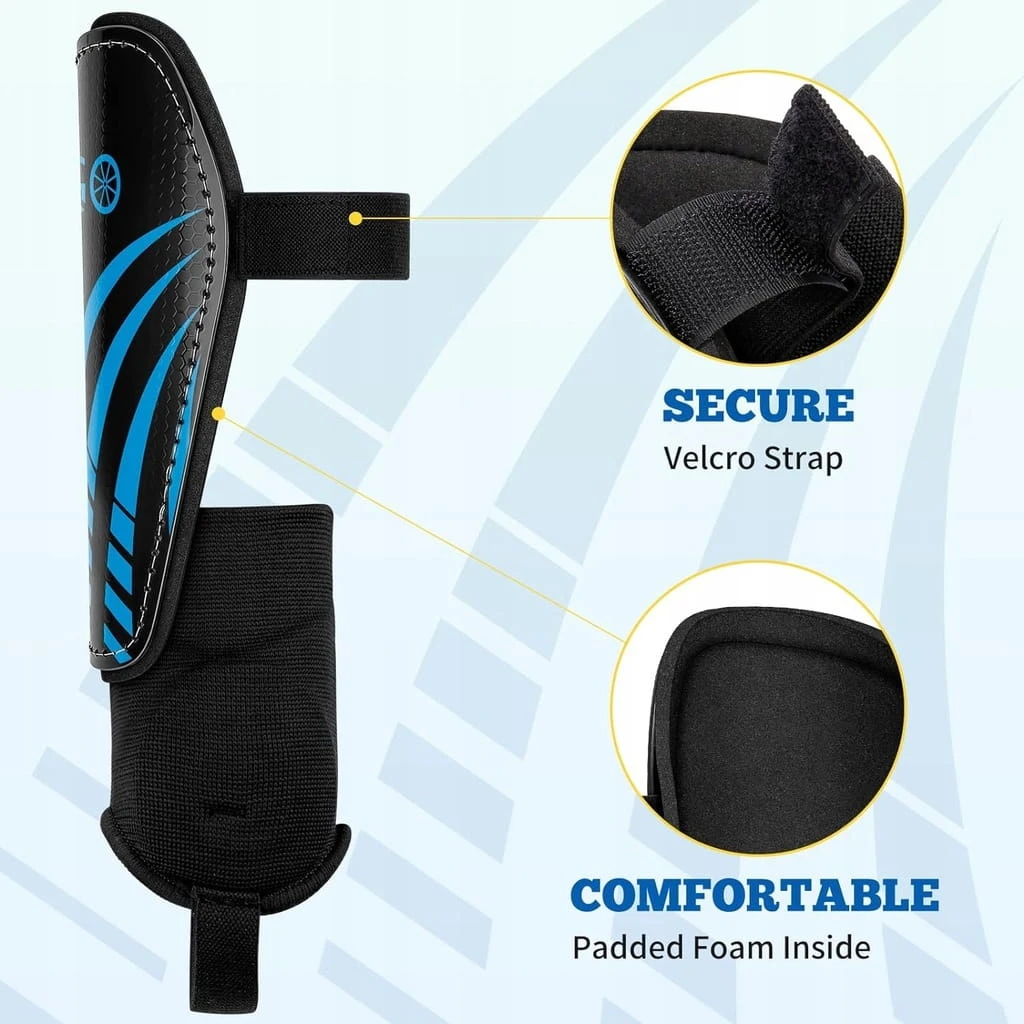 - ✅ Wygodny materiał. Lekkie, wyściełane plecy EVA i prosta konstrukcja nadają tym ochraniaczom piszczeli niewielką wagę, wysoką oddychalność i dobre dopasowanie do kształtu nóg, aby skutecznie złagodzić urazowe uderzenia z zewnątrz. Dzięki systemowi zabezpieczeń na rzepy z przodu te ochraniacze na golenie dla dzieci i młodzieży mogą pozostać na swoim miejscu podczas zabawy bez ześlizgiwania się.