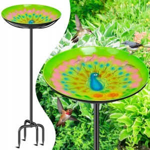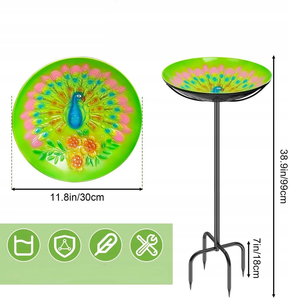 Metalowa wanienka dla ptaków na zewnątrz, wolnostojące wanienki i karmniki do ogrodu, patio, (zieleń pawia)