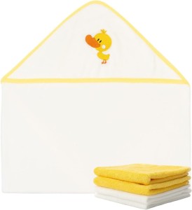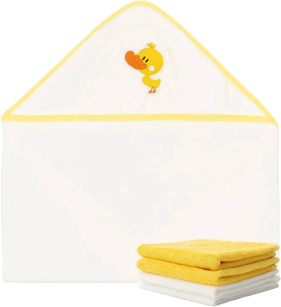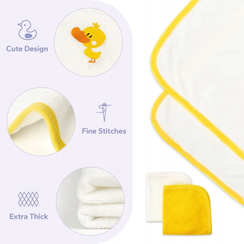 Okrycie kąpielowe z kapturem „Kaczuszka” 75 x 75 cm – ręcznik bawełniany (zestaw – 4 ręczniczki)
