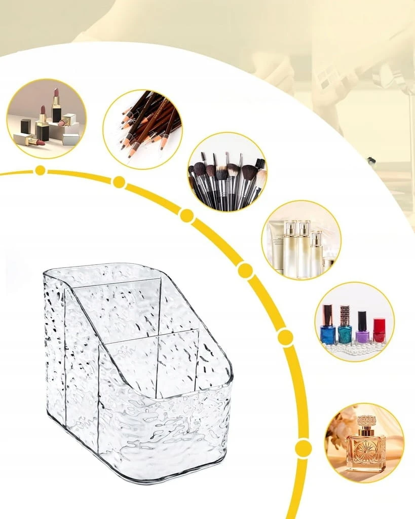 - ✅ Wielofunkcyjne przechowywanie: ten przezroczysty organizer do makijażu może pomieścić nie tylko pędzle do makijażu, szminki, produkty do pielęgnacji skóry, ale również artykuły biurowe, takie jak linijki, długopisy itd