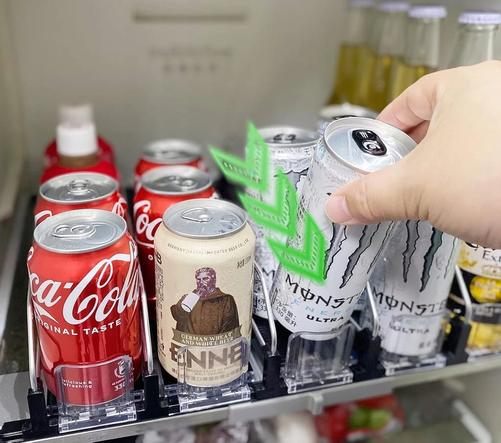 - ✅ Łatwy w użyciu: nasz automatyczny dozownik puszek do lodówki zapewnia prosty i skuteczny sposób na uporządkowanie puszek z napojami w lodówce i pomieszczeniu gospodarczym.