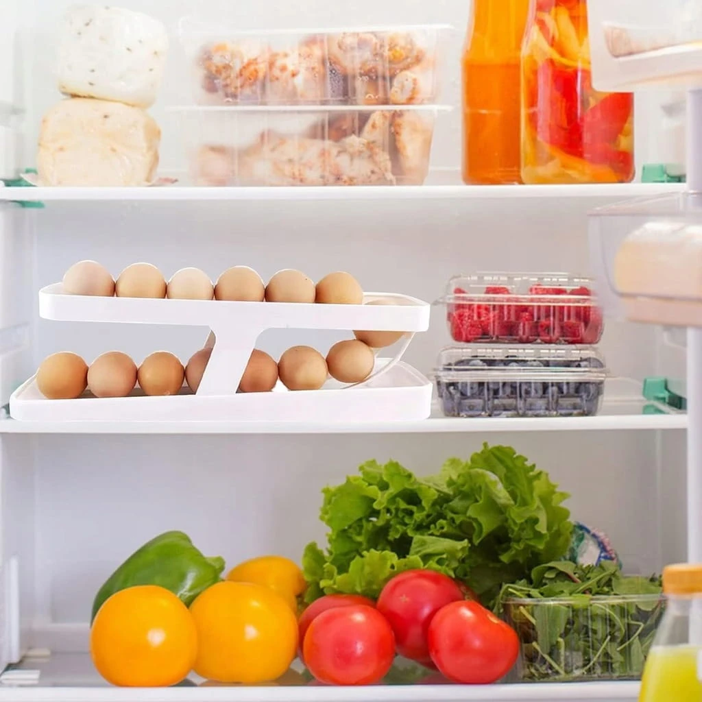 Organizer do lodówki na jajka – regał 2 poziomy, dozownik z rolką