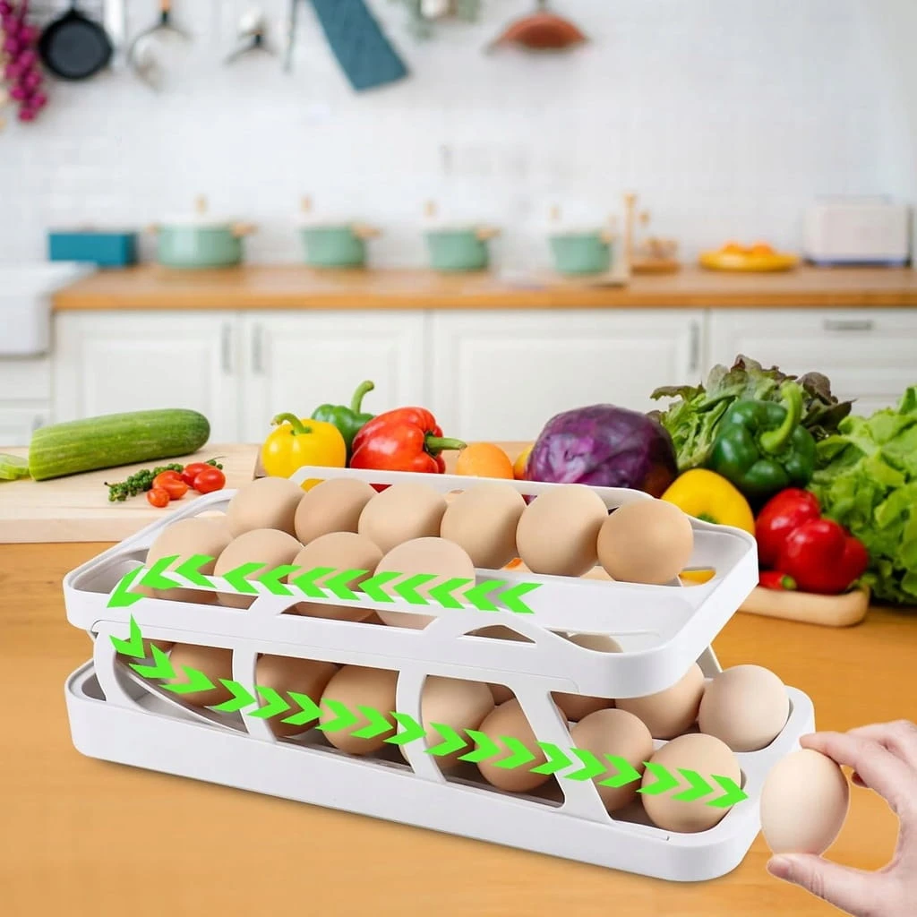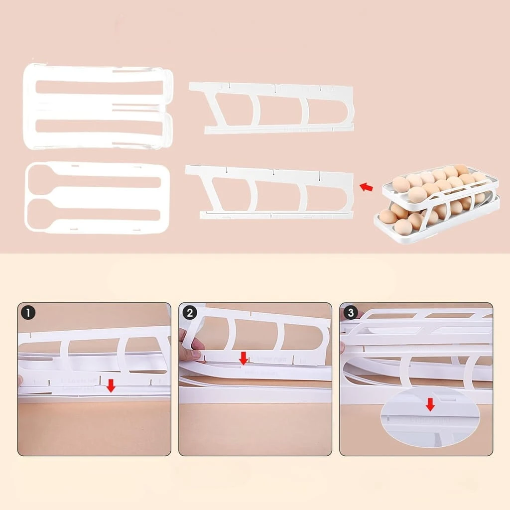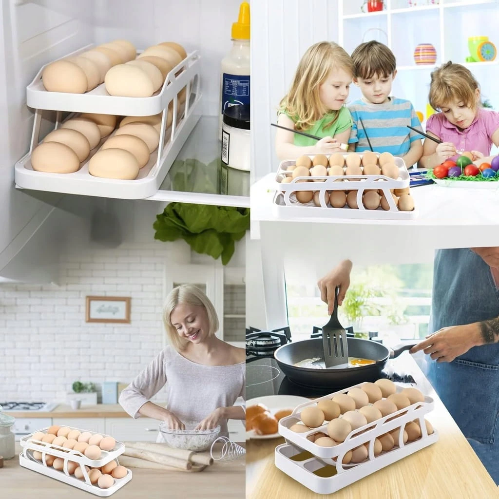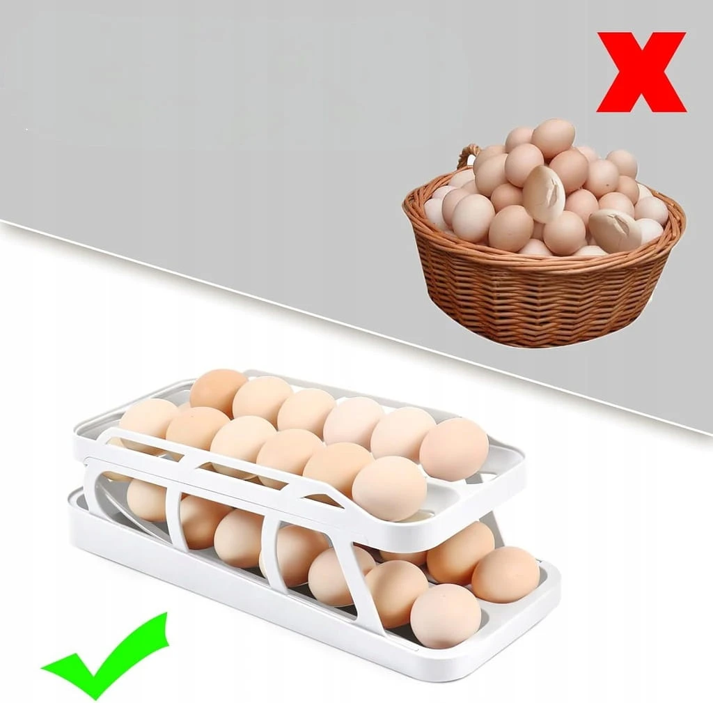 Organizer na jajka do lodówki – 2 poziomy z rolką, podwójny pojemnik