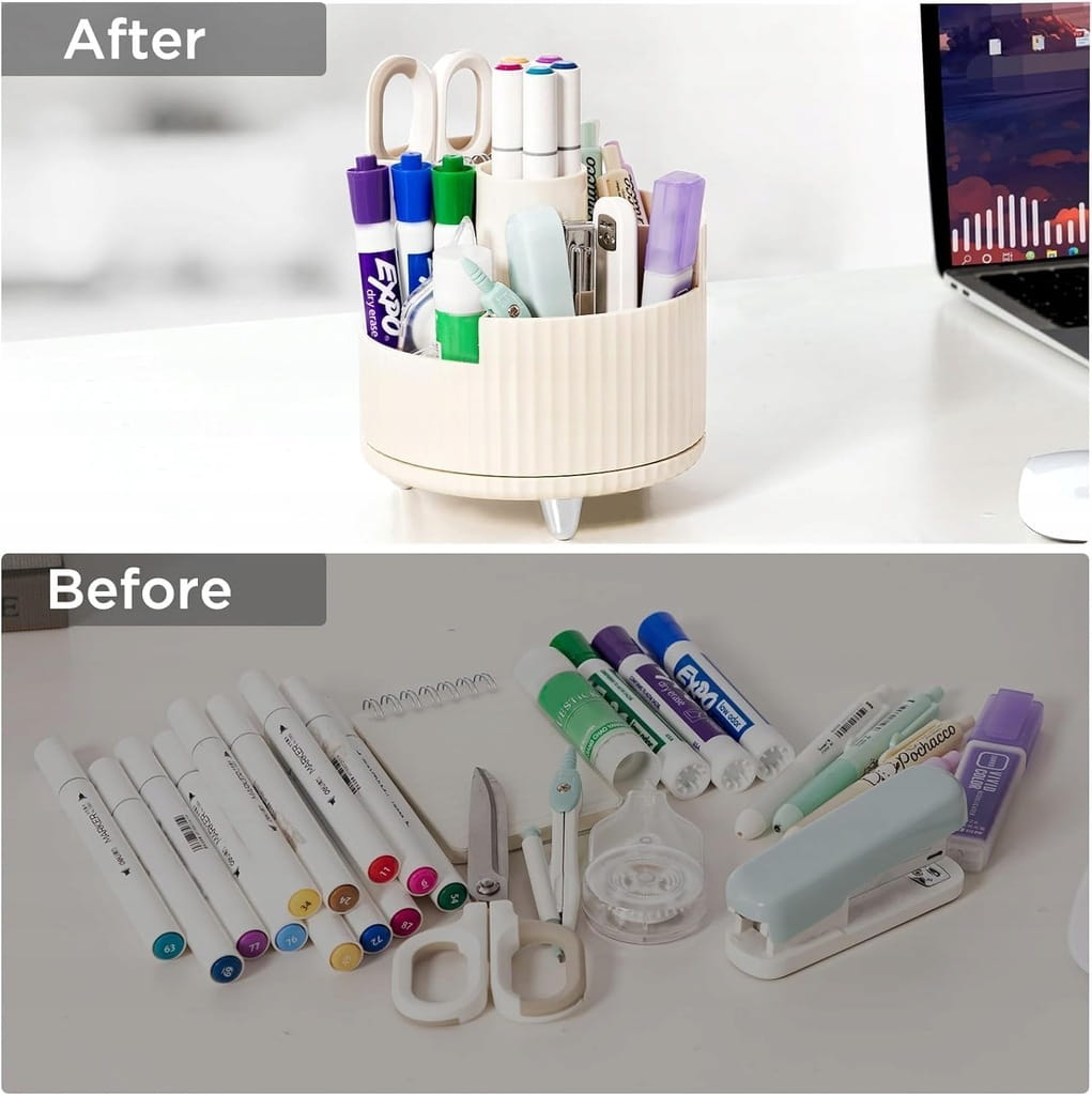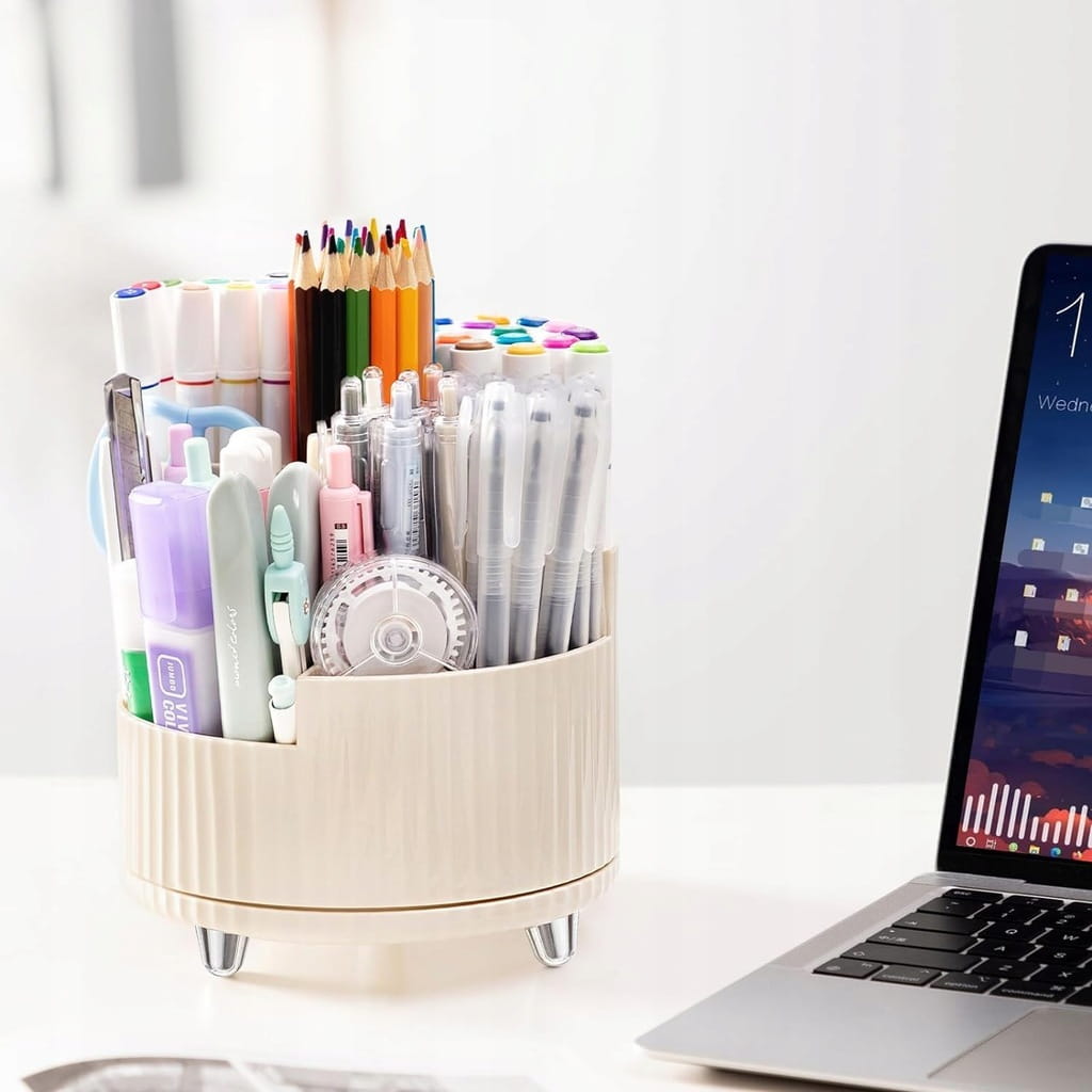 - ✅ Obracany o 360°: Ten uchwyt na długopis biurkowy można obracać o 360 stopni, obrót jest płynny i nie utknie. Można go obracać pod dowolnym kątem, łatwo przechowywać lub wyjąć potrzebne elementy, bardzo wygodnie i szybko. Nie tylko pomaga zaoszczędzić czas i zwiększyć produktywność, ale także zawsze utrzymać biurko w czystości i porządku.