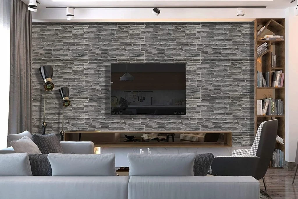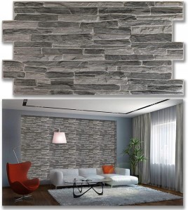 - Panele ścienne z tworzywa sztucznego PCV, okładzina z płytek dekoracyjnych 3D - ciemny łupek (10 sztuk pokrywa 4,9²)