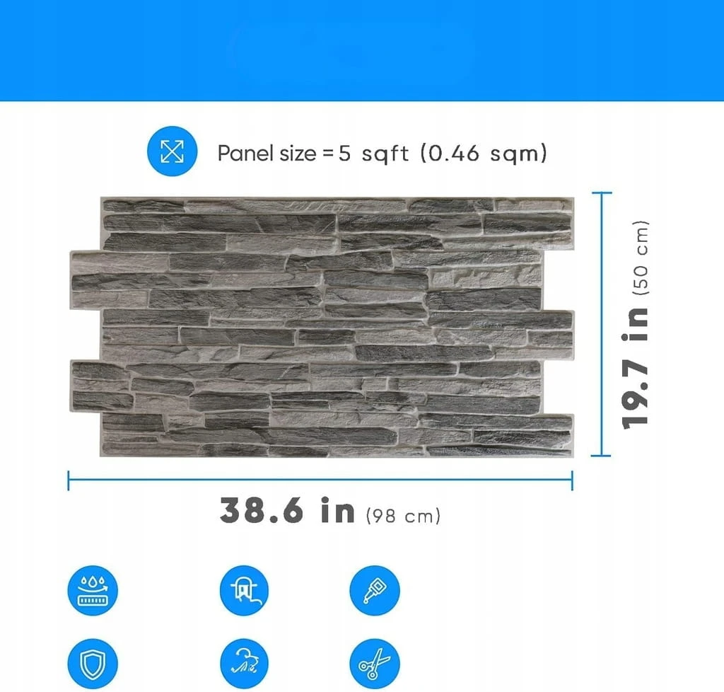 - Rozmiar każdego panelu to 98 cm x 50 cm, każdy panel = 0,49 stopy kwadratowej.