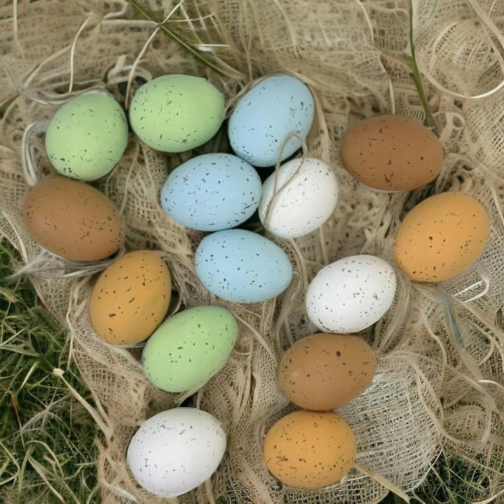 Plastikowe jajka dekoracyjne – rekwizyt do fotografii 5,5 cm (zestaw – 15 sztuk)