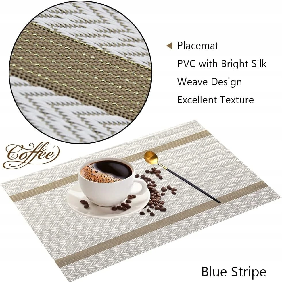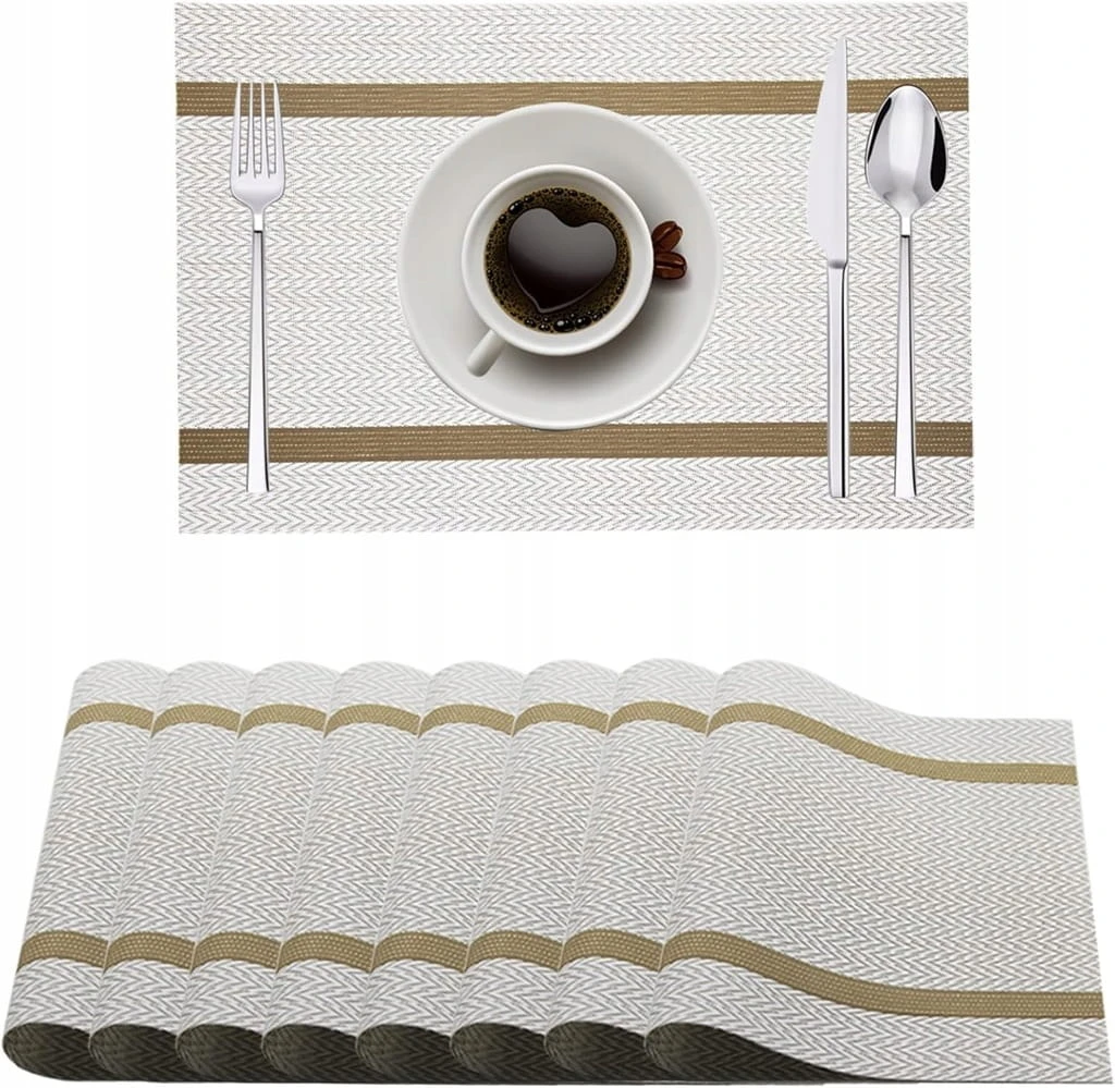 - Naturalna podkładka: wykonana w 80% z PVC + 20% z jedwabiu poliestrowego, odporna na zużycie powierzchnia sprawia, że podkładka jest szczególnie elegancka i stylowa, dzięki technologii tkania jest trwała i może być ponownie wykorzystana w wielu różnych sytuacjach. Mata stołowa może być swobodnie składana, swobodnie cięta, nie zostanie zdeformowana przez naprężenie.
