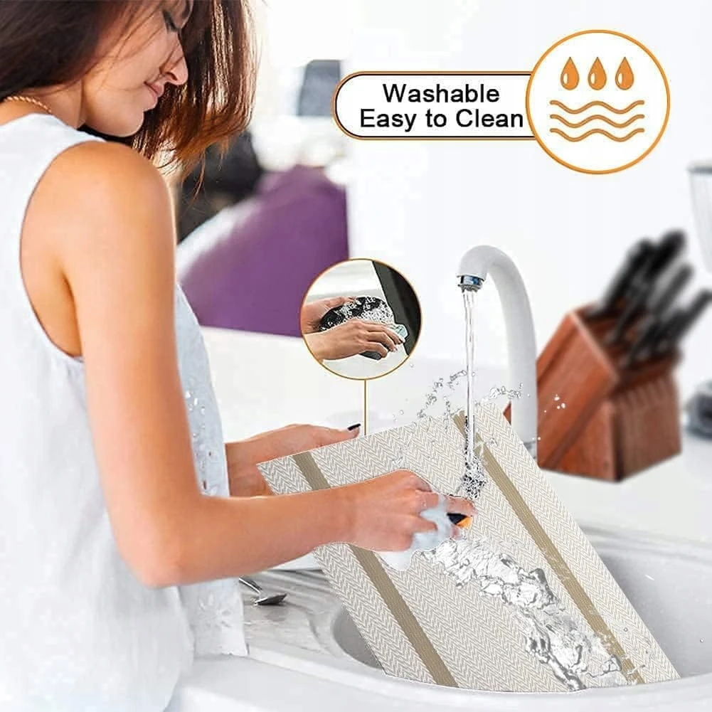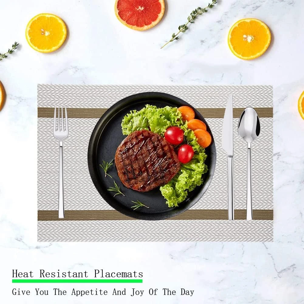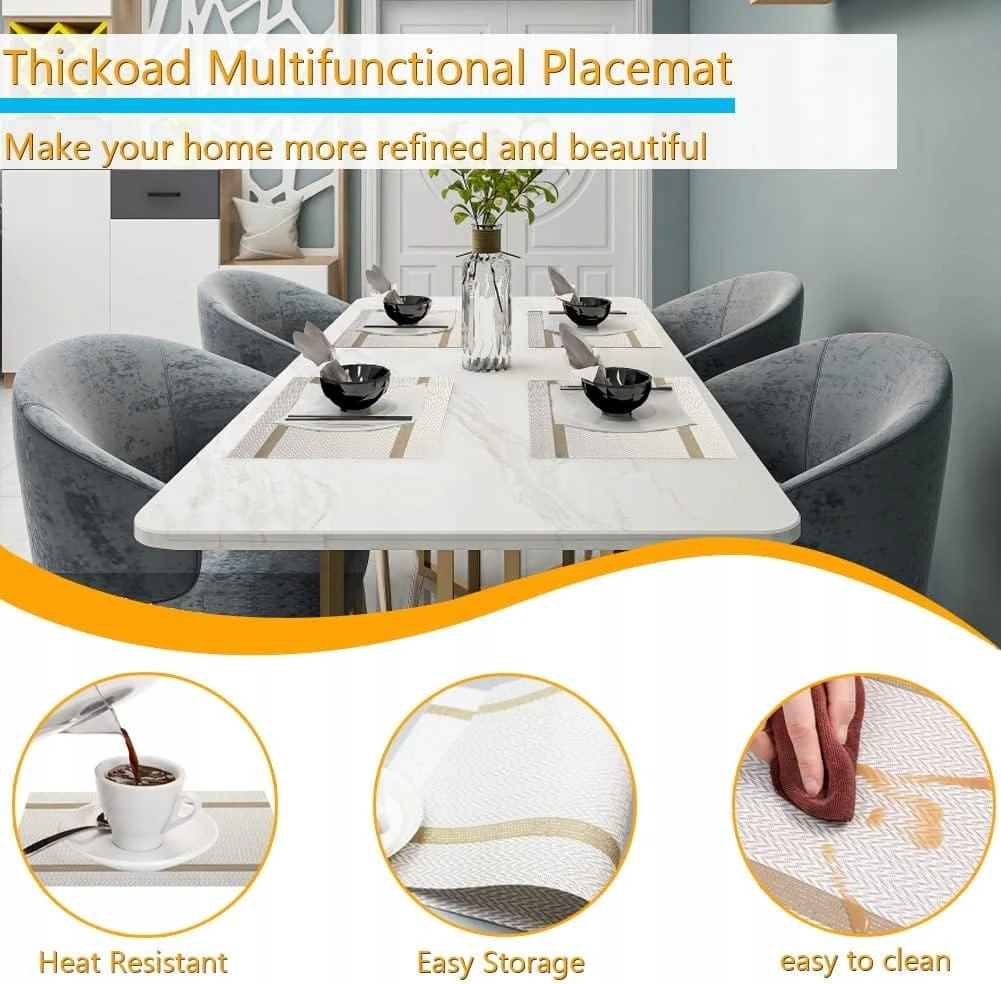 - Doskonała dekoracja: eleganckie antypoślizgowe podkładki są dobrą dekoracją i jakością życia w domu, restauracji, kuchni, hotelu i biurze biznesowym. Może być również stosowany w miejscu do grillowania latem, ponieważ podkładki są odporne na ciepło i łatwe do czyszczenia. Zmywalne podkładki