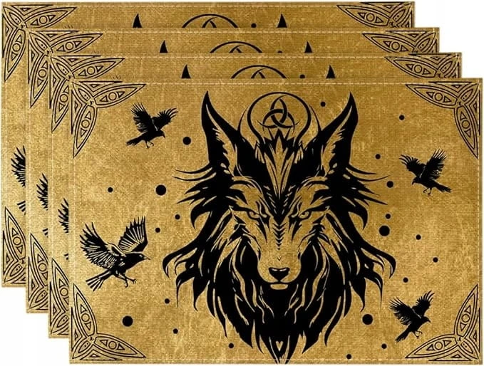 Podkładki kuchenne retro – Wiking wilk (zestaw – 4 sztuki)