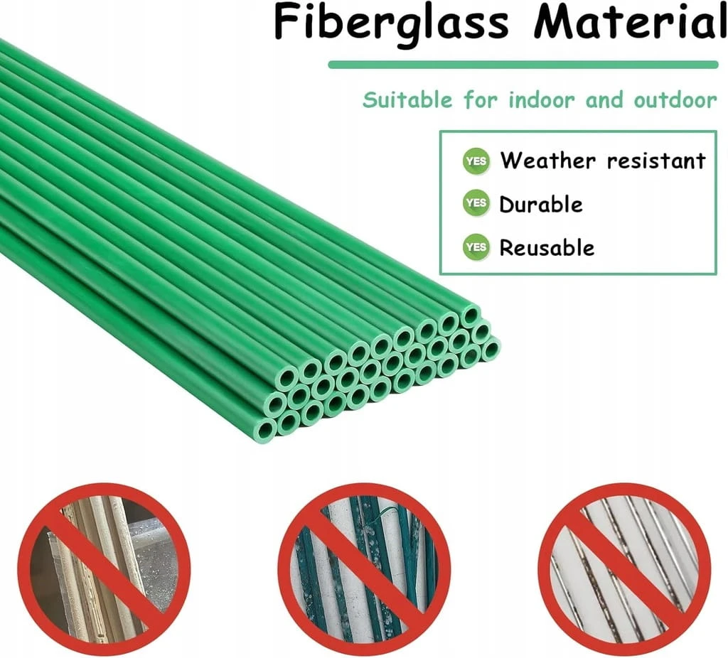 - ✅ Solidny i trwały materiał z włókna szklanego: Paliki roślinne są wykonane z włókna szklanego, dzięki czemu są bardzo mocne i trwałe, aby podeprzeć rośliny. Nasze paliki ogrodowe mogą być używane przez długi czas.