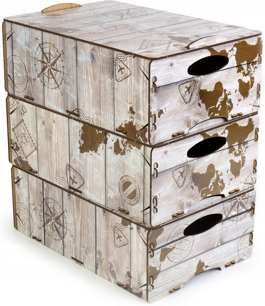 3x POJEMNIK PUDEŁKO ORGANIZER Z POKRYWĄ BOX DO PRZECHOWYWANIA ZAMYKANY mdf