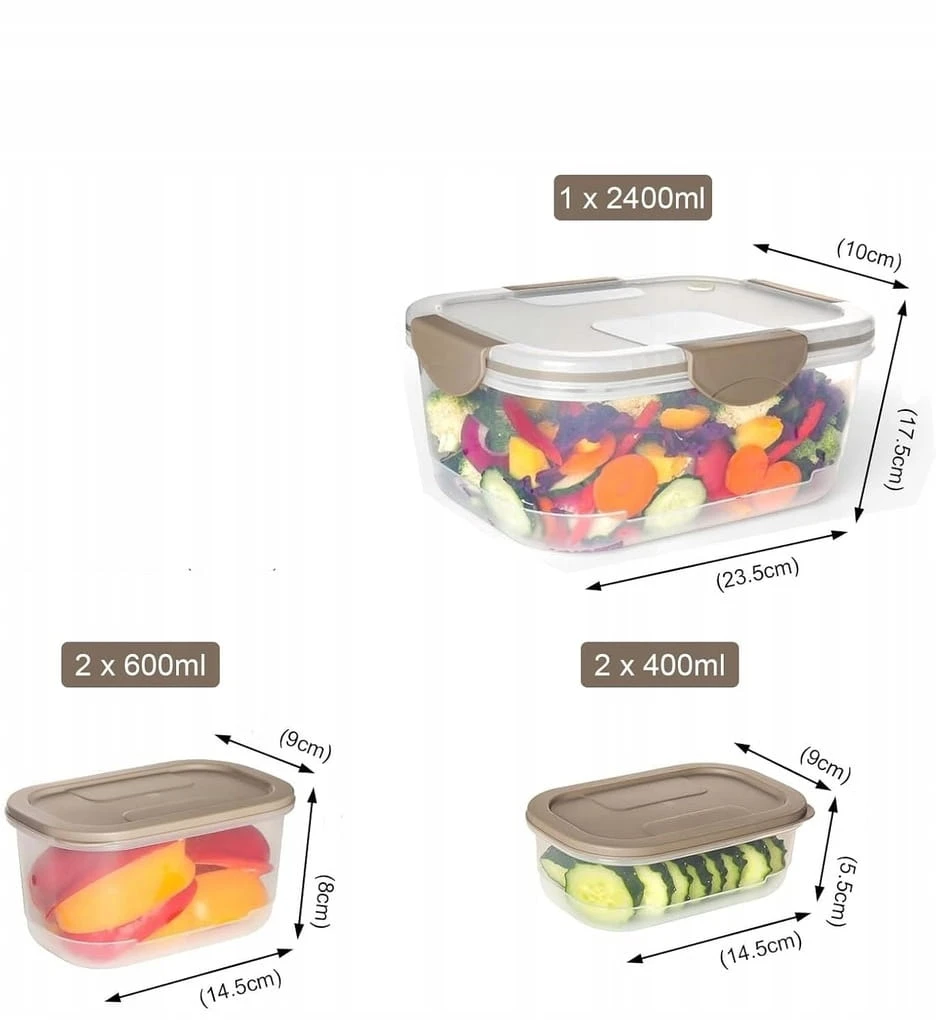 Pojemniki plastikowe na jedzenie – organizacja (zestaw – 5 elementów)
