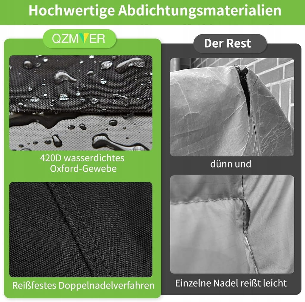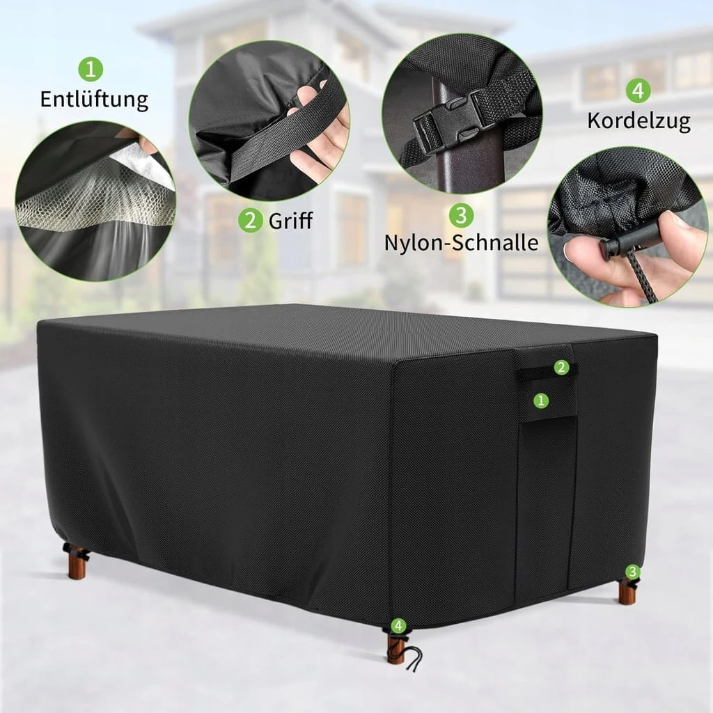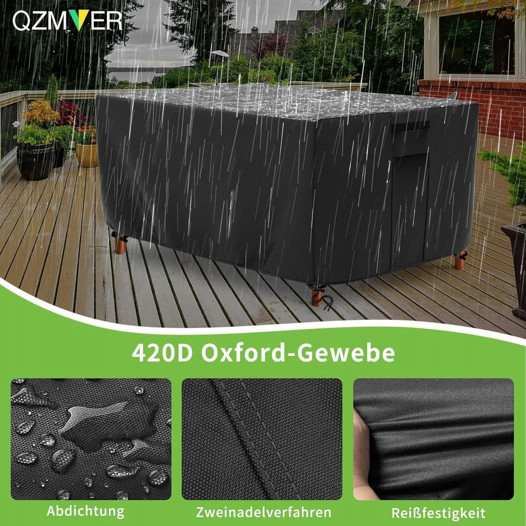 - ✅ Wysokiej jakości materiał. Pokrowiec na meble ogrodowe QZMVER jest wykonany z tkaniny Oxford 400D powlekanej poliuretanem z powłoką UV na spodzie, która jest w stanie zapewnić ochronę drogich mebli i jest wykonany z wodoodpornego materiału, który spełnia standardy środowiskowe UE 7P, jest wolny od niebezpiecznych i rakotwórczych substancji chemicznych, które są w stanie zapobiec uszkodzeniom mebli spowodowanymi warunkami atmosferycznymi, do wygodnego przechowywania.