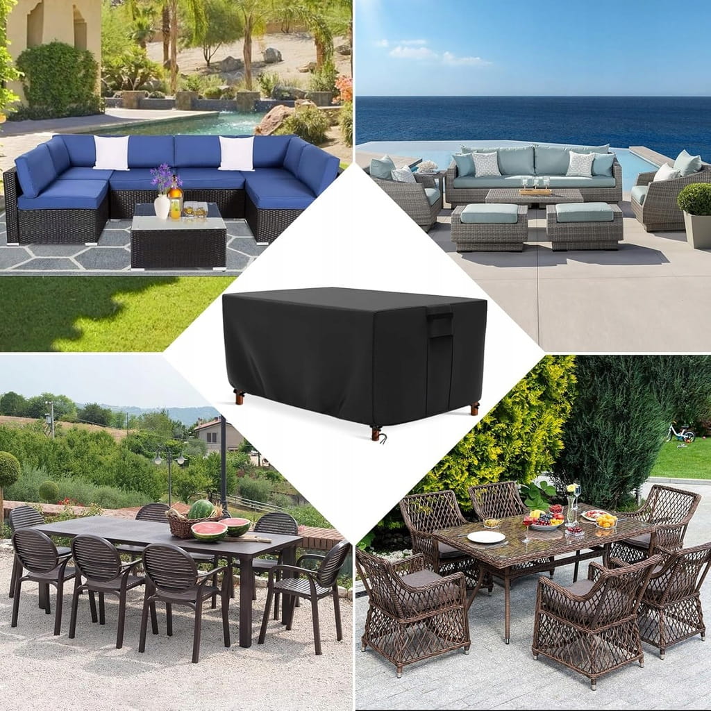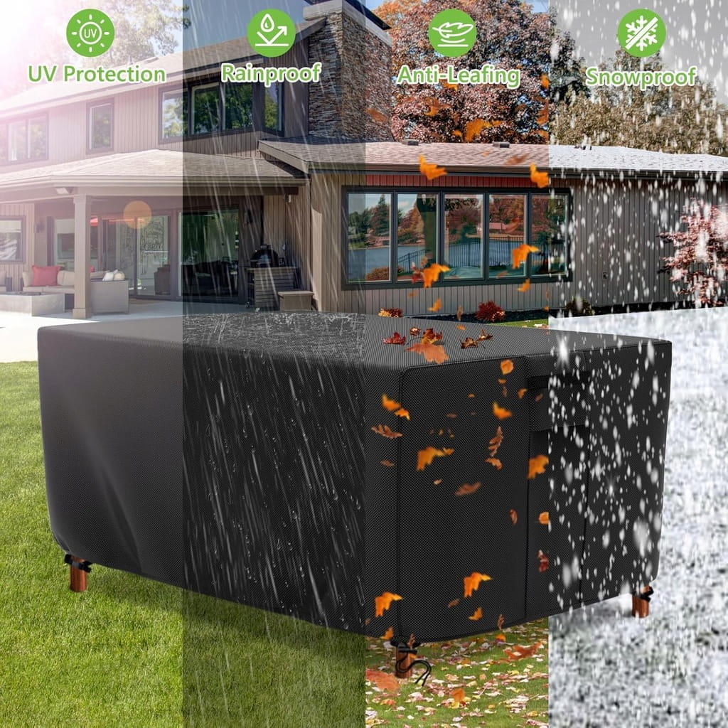 - ✅ Szeroka kompatybilność. Pokrowiec na stół ogrodowy odporny na warunki zimowe nadaje się do większości kształtów mebli, takich jak np. stoły jadalne, meble rattanowe, sofy, stoliki kawowe itp. Można czyścić neutralnym środkiem czyszczącym, unikać silnego tarcia, a po czyszczeniu należy unikać suszenia w wysokiej temperaturze i wystawiania na działanie promieni słonecznych, aby wydłużyć żywotność powłoki.